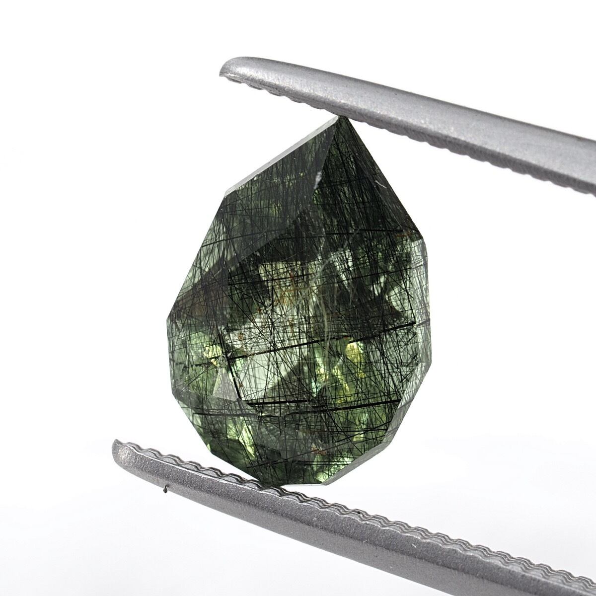 ルドウィジャイトインペリドット(別名ルードヴィッヒアイトインペリドット)は、ペリドットの内部に針状のルドウィジャイトが内包された珍しいペリドットです。多角形のポリゴンカットに濃淡ある風合いがクールな一石!