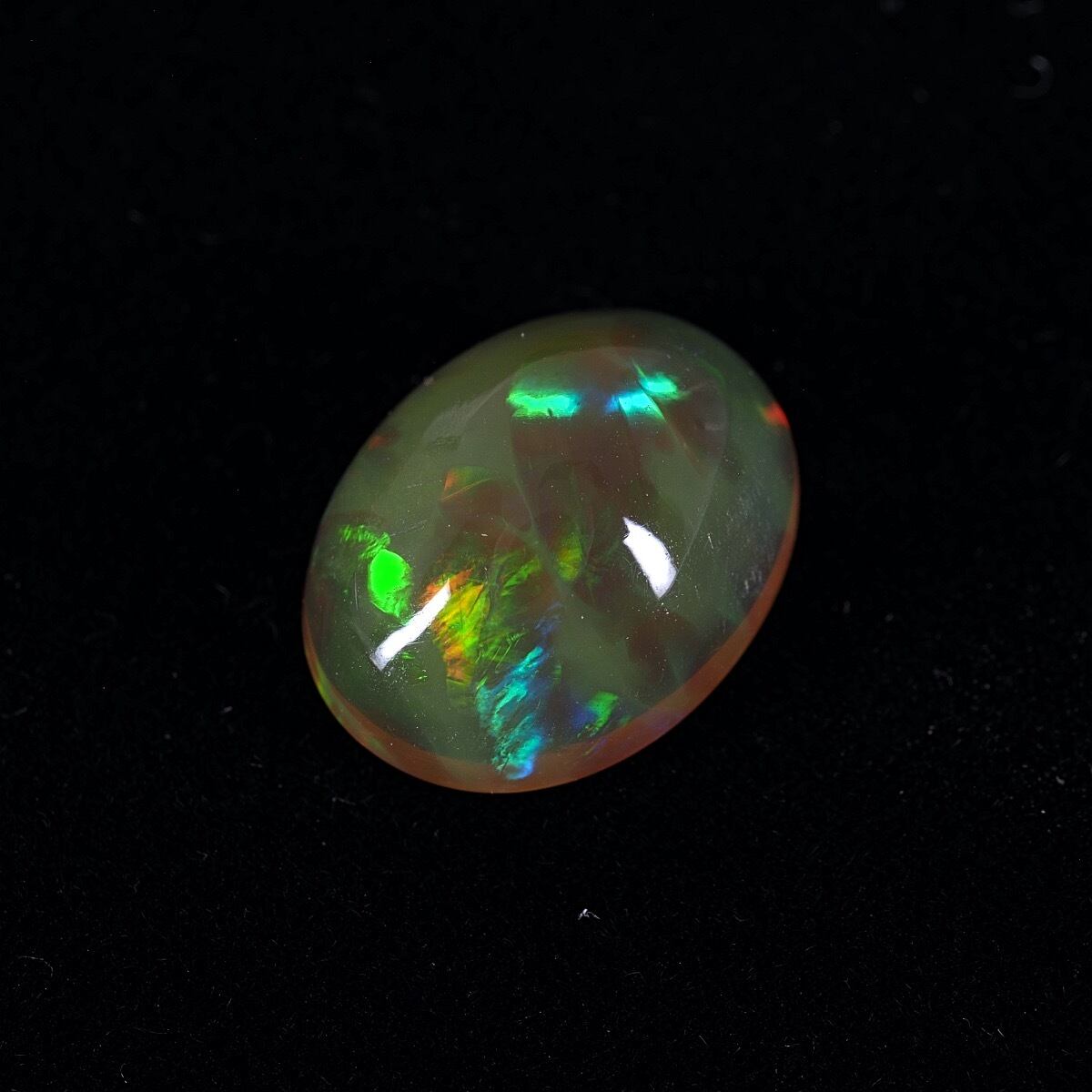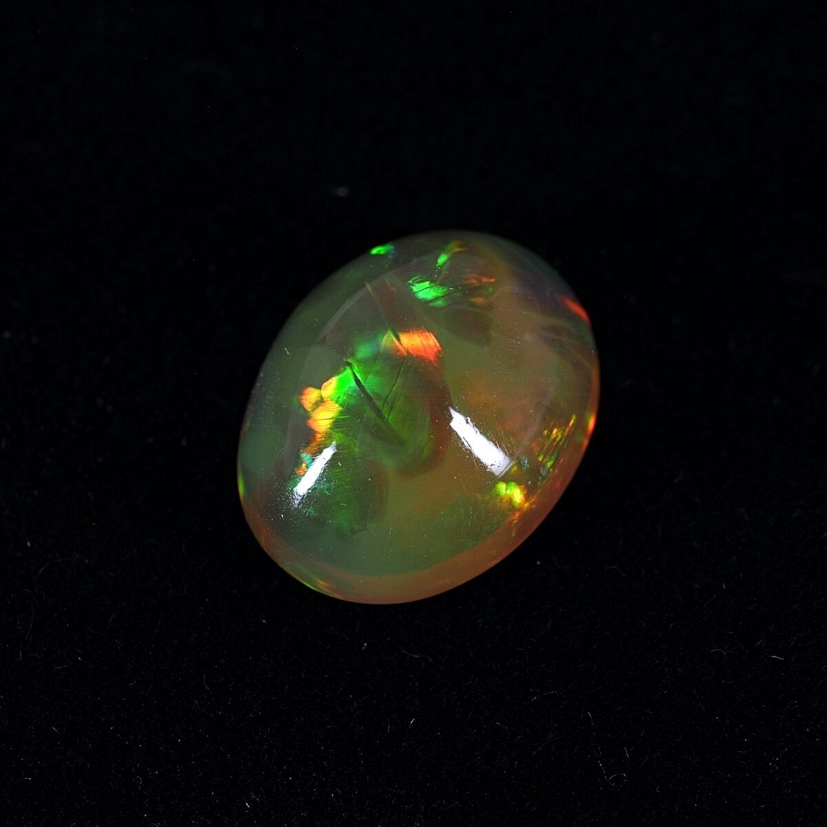 地色はオレンジのハニカム多め個体です。模様の面積が広くランダムで入っている様子が見られ、角度によって様々に表情を変えるので面白いですね。遊色は大きめのフラッシュが模様の隙間からドバッと湧き上がります。
