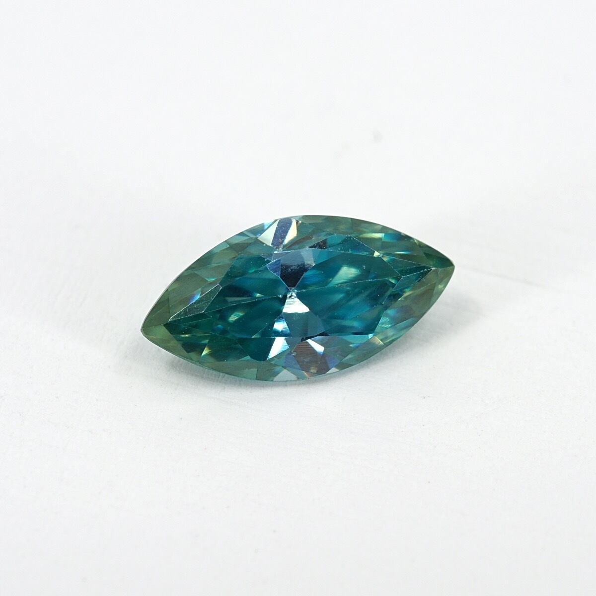 ちょっと珍しいマーキスカットのブルーモアッサナイト。イエローグリーン混じりのポップなブルーですが、ディスパーションはライトブルーの煌めきが見えますね!今回1ピースのみ入荷!