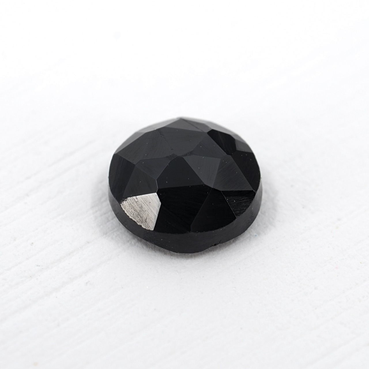 様々な色合いが存在し魅力的なスピネル。赤、オレンジ、青、緑、黒、無色など、黄色(黄緑色)以外のほぼ全ての色がある石として有名です。こちらは真っ黒のスピネルでローズカットですね。ブラックスピネルといえば、よく連のネックレスなどで使用されているのを見かけますが、穴あきではないルースのものは初めて扱いました。