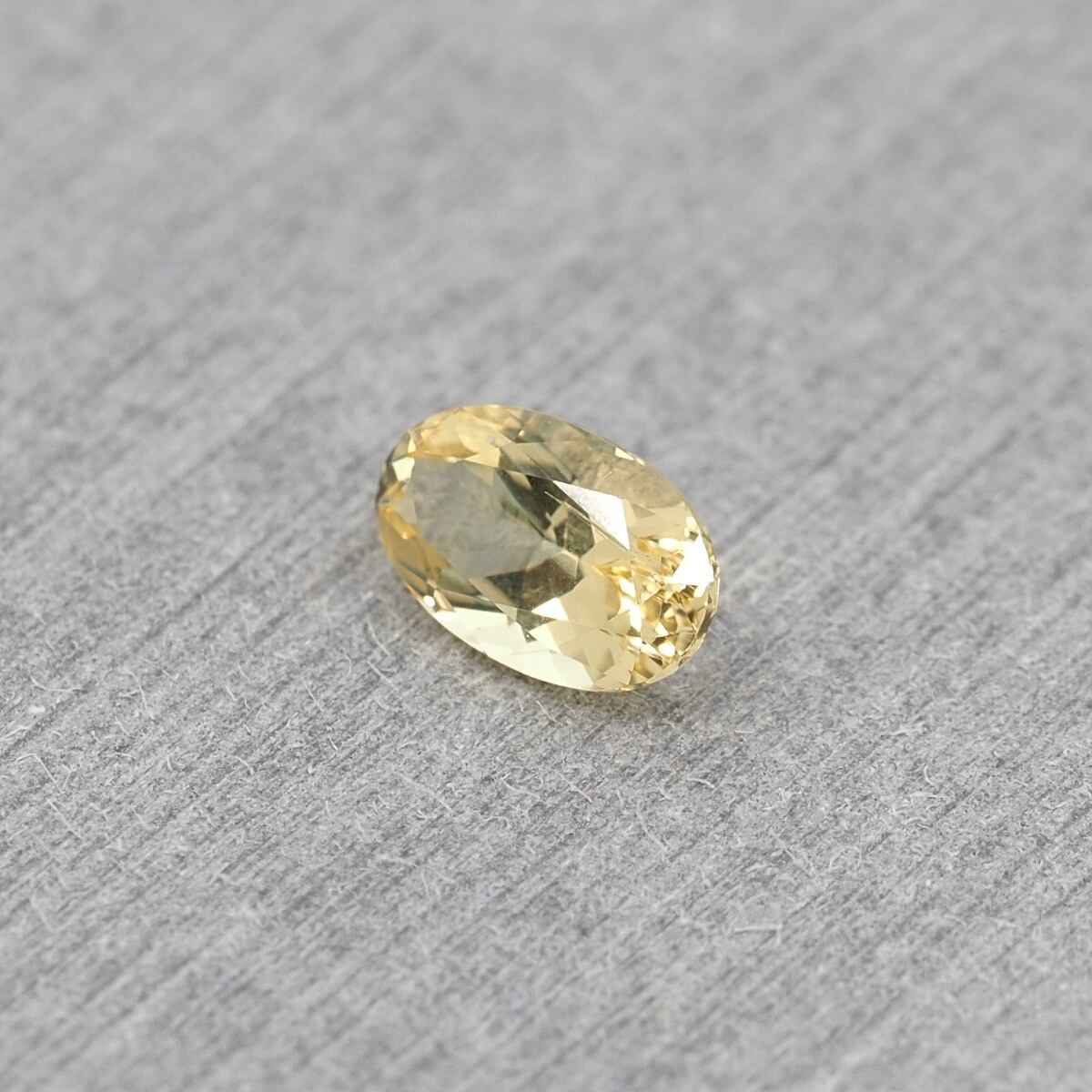 鮮やかなレモンイエローのダンビュライト!希少カラーの一つです。カットが細かいのも好影響で、強テリをもつ輝きが印象的な個体。一筋のインクルージョンもまた個性、透明度も非常に高めです。