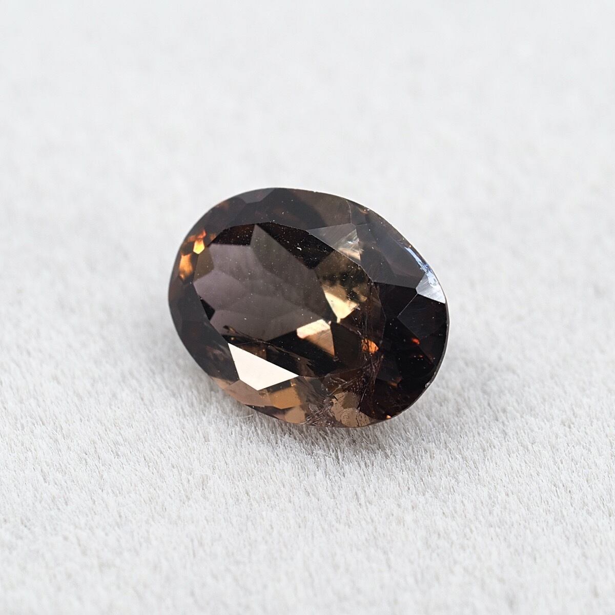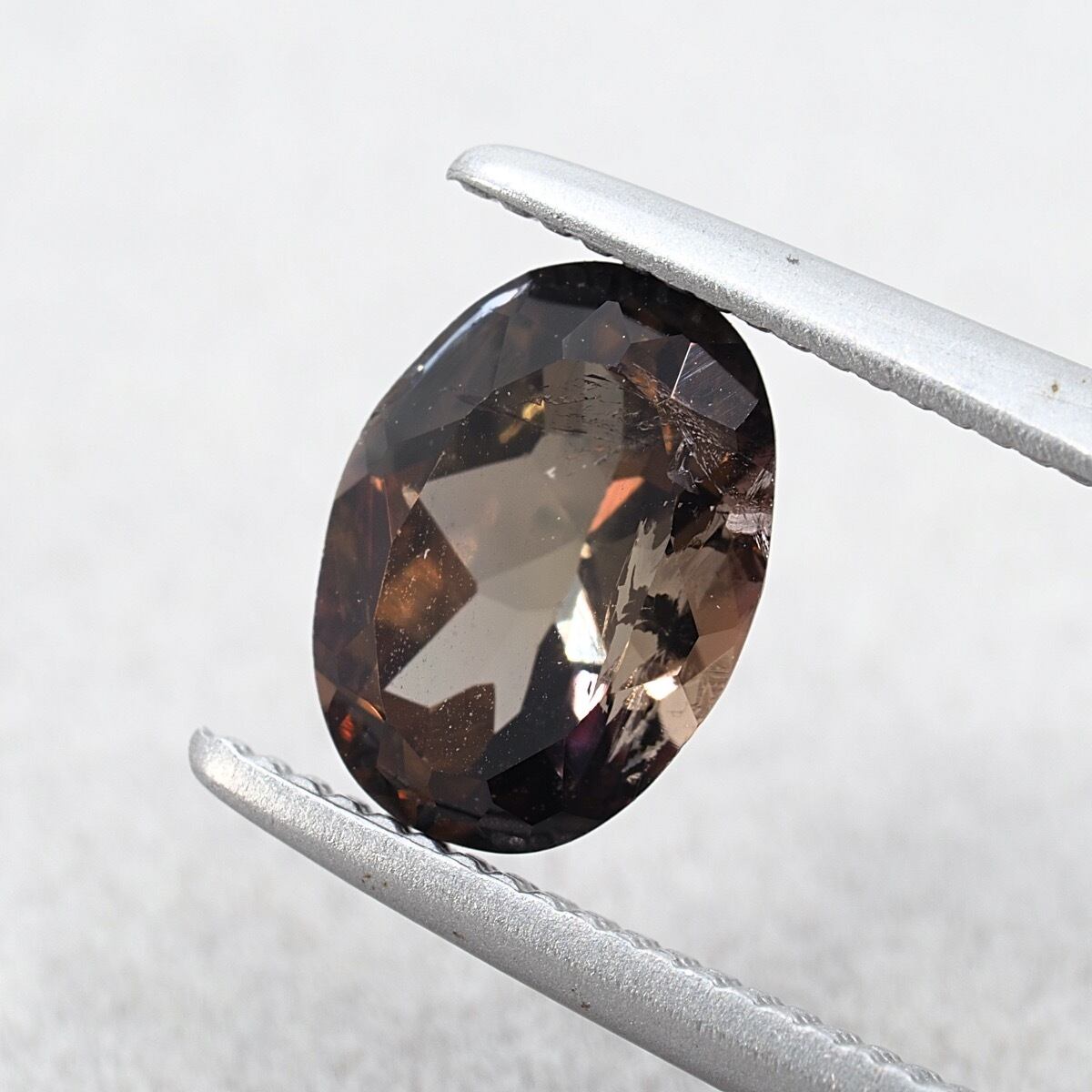 この個体、ルーペでかなり根気よく注目して見てみると多色性の中に若干のブルーが確認出来ます(写真では捉えきれません)それとアキシナイトとしては内包が意外と少なめですね。