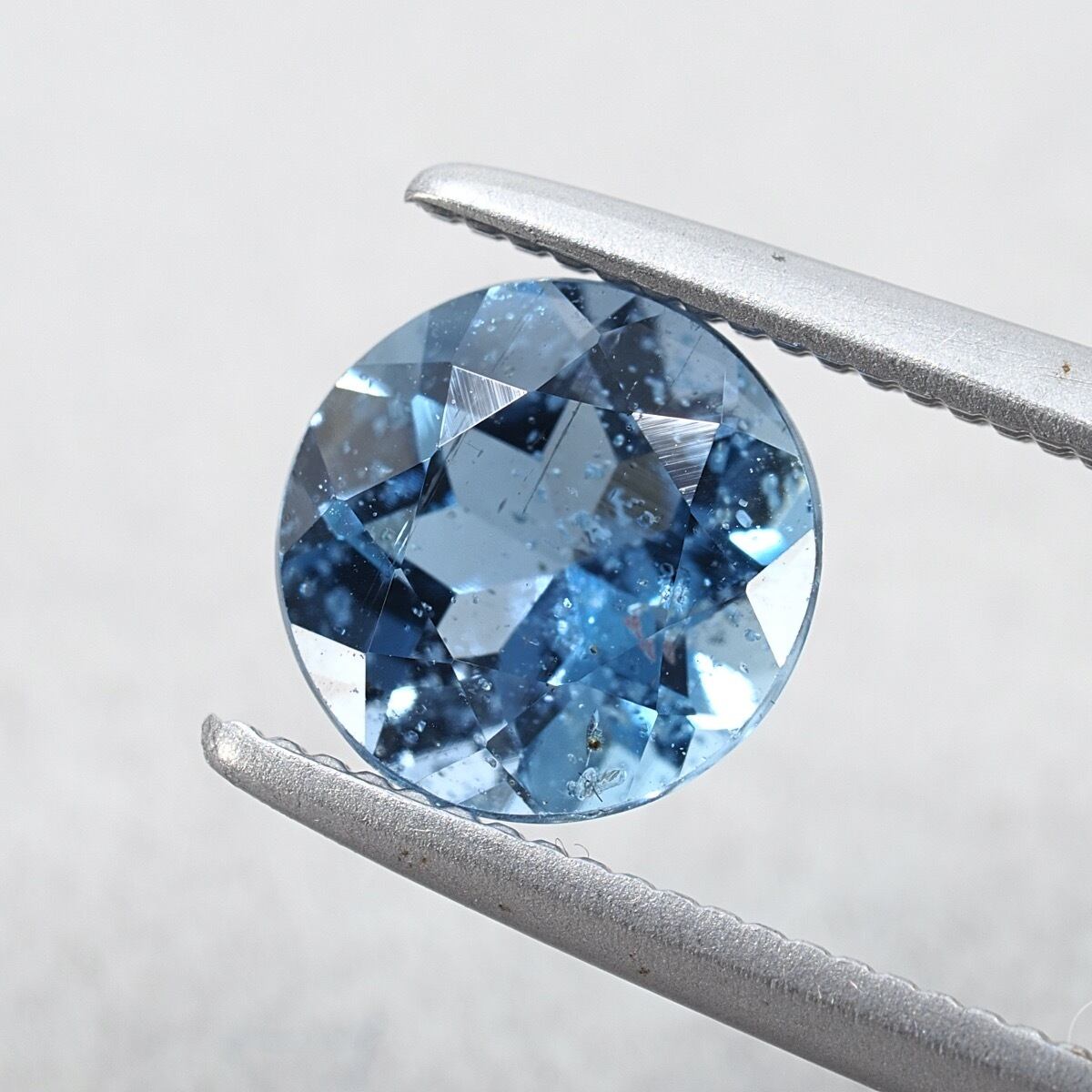 ブラジル産が有名ですが、こちらはアフリカ地方産出の「サンタマリア・アフリカーナ」ですね。鮮やかなライトブルー、内包はまるで気泡(バブル)と、まさに「アクアマリン」の名にふさわしく海中の風景を石の中に再現したかのようです。