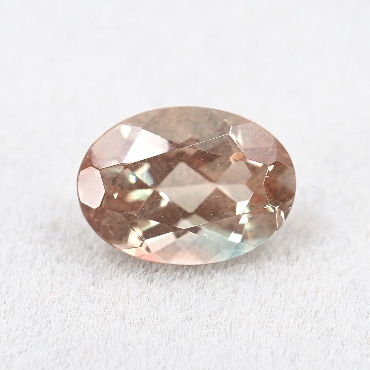 アンデシンといえば赤い子を思い描く方も多いかと思いますが、こちらはオレゴンサンストーンの上級品のようなほんのりしたバイカラーになっており、グリーンが混じるオレンジブラウンが美しい個体。テリが強く、屈折光も美しいの一言。