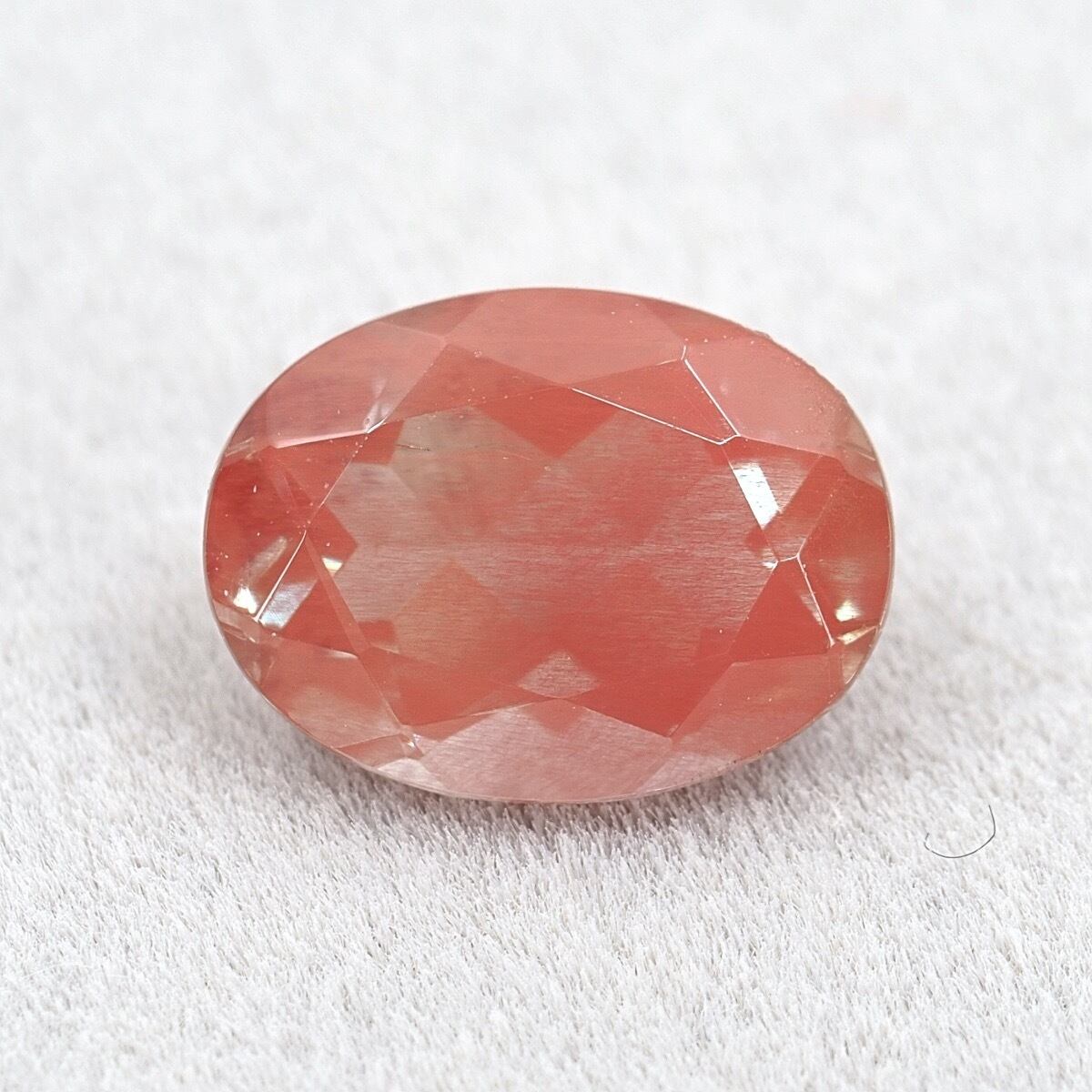 赤い霧のようなモヤモヤが内包された個体、その内部からライトグリーンが見え隠れする個性的なアンデシンですね。
