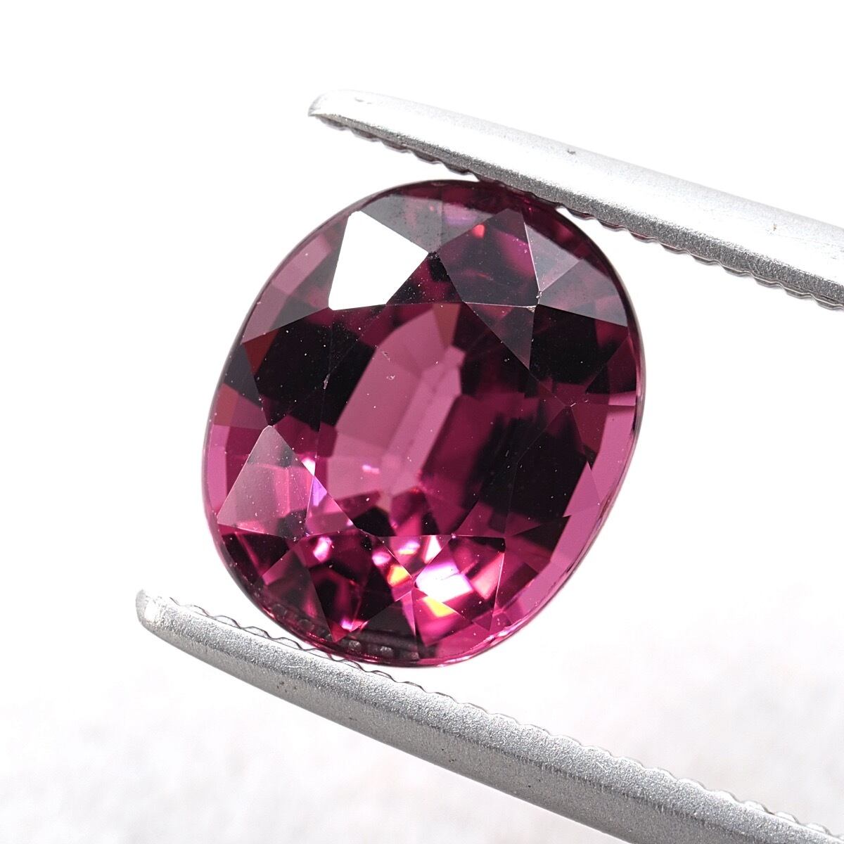 強テリを持つ地色も美しい個体です。色味はこれぞロードライトガーネットと言わんばかりの定番色で、深みのある赤紫です。