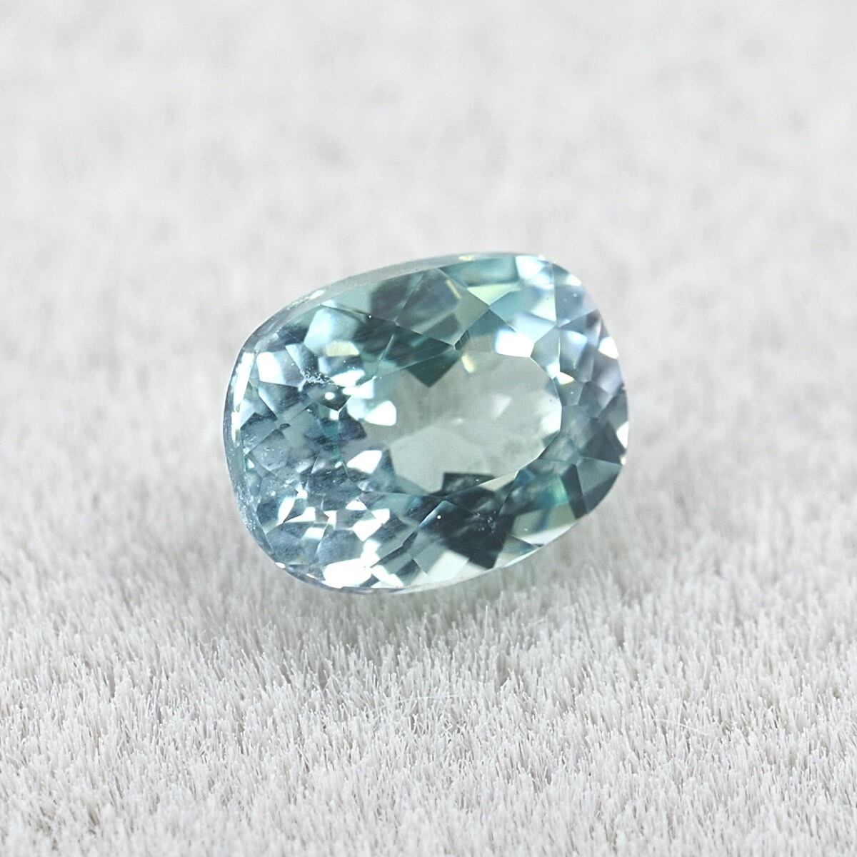 大人気のブルーカラーも混じった全体的には淡いブルーグリーン色です。ブリリアントのカットが細かく小さめながら輝きはかなりすごいです。