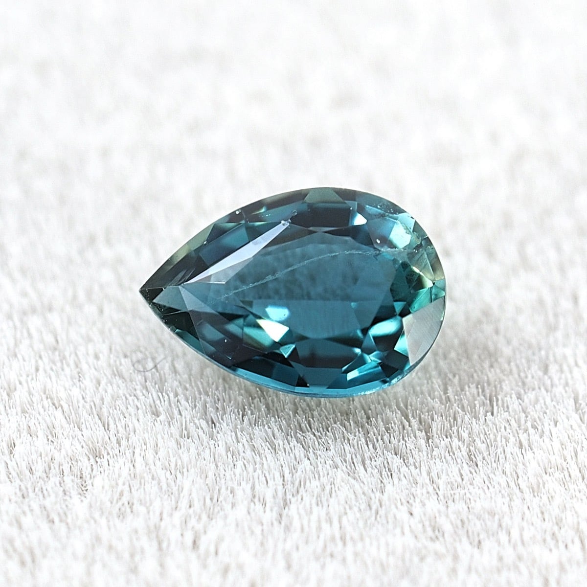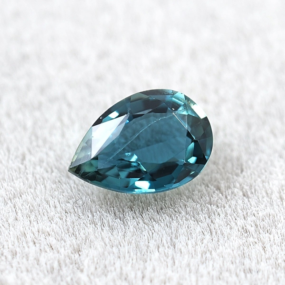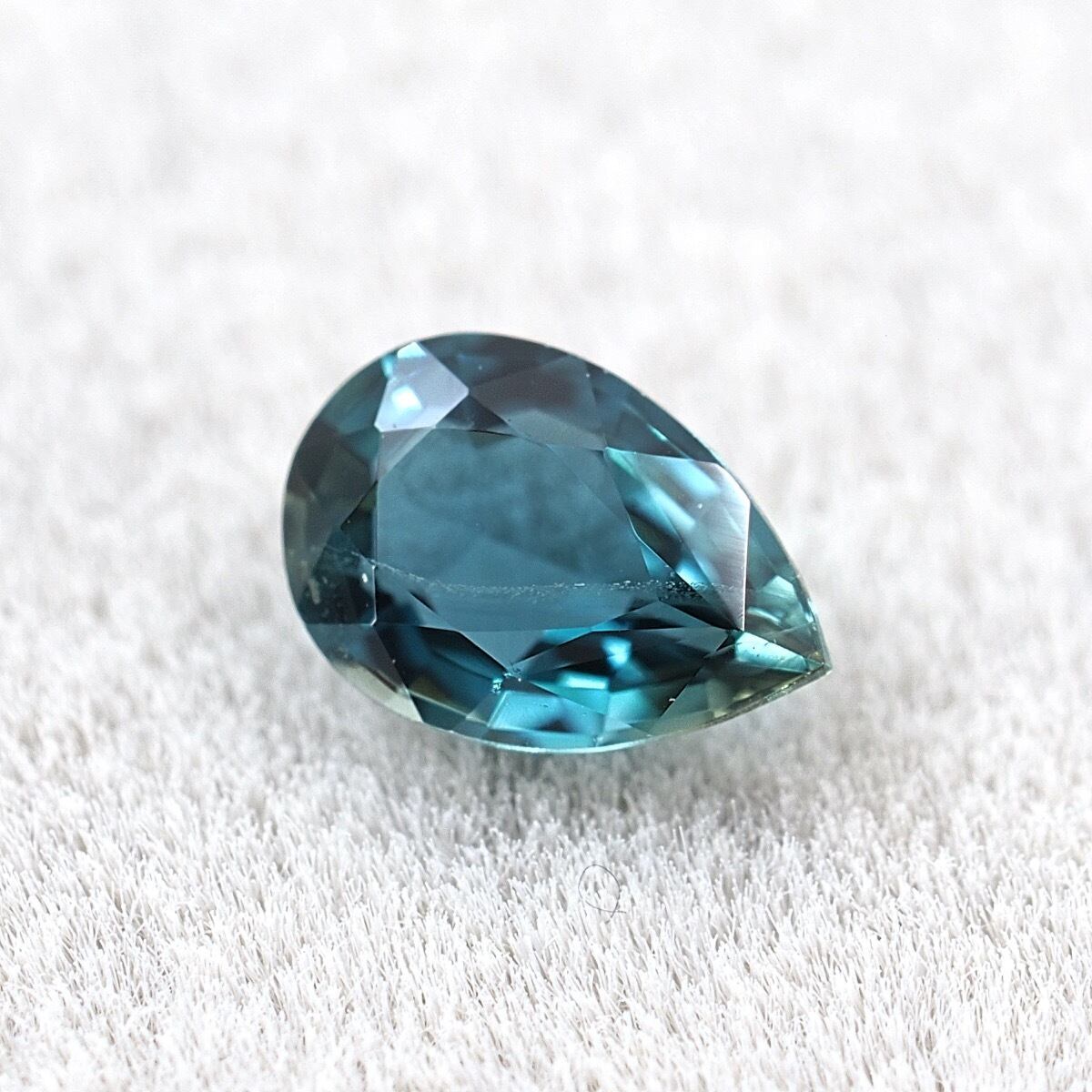 この個体は線状のインクルージョンを含め、まさに涙を体現したような少し柔らかなペアシェイプが可愛いです。色味は上質なラズライトのようなブルーグリーンです。