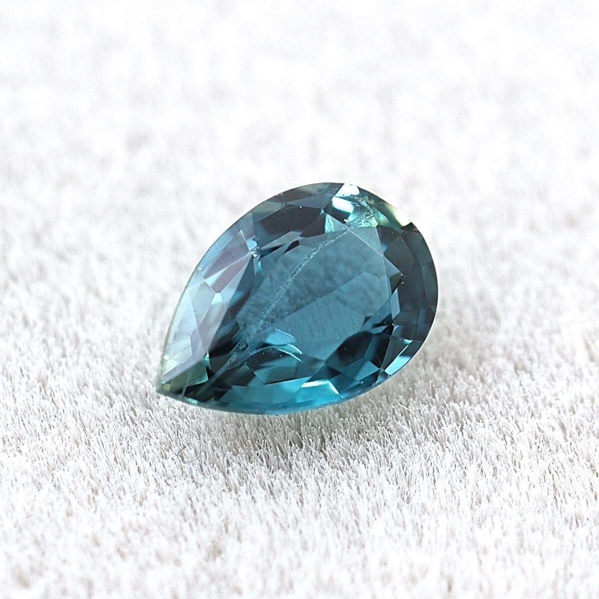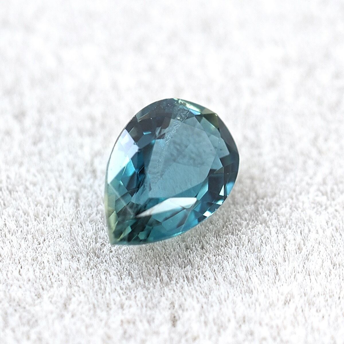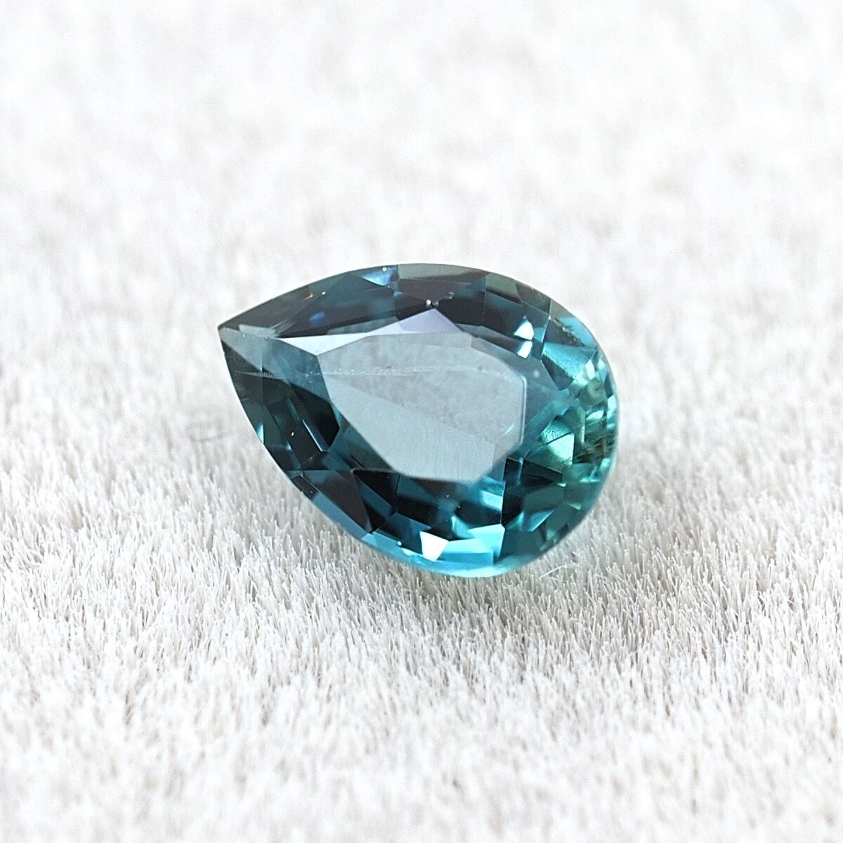 この個体は線状のインクルージョンを含め、まさに涙を体現したような少し柔らかなペアシェイプが可愛いです。色味は上質なラズライトのようなブルーグリーンです。