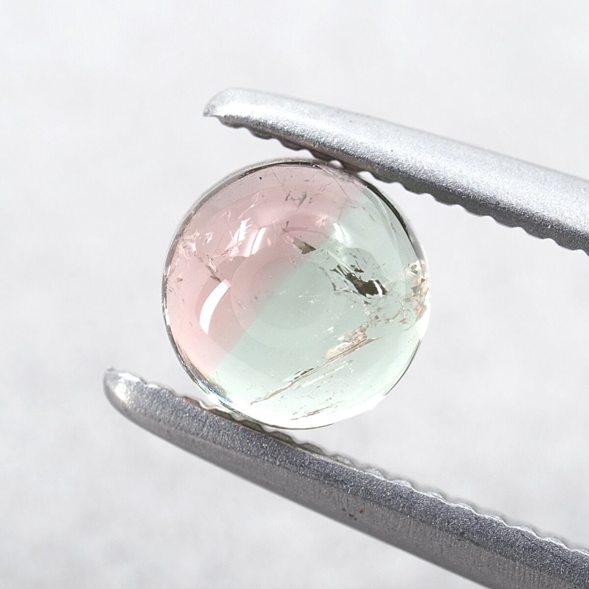 ライトグリーンがほとんどの割合ですが、シックなピンク混じった和な色味がアクセントになったバイカラー個体です。ぷるんとしていてとっても可愛いです。少しインクルージョンがあります。