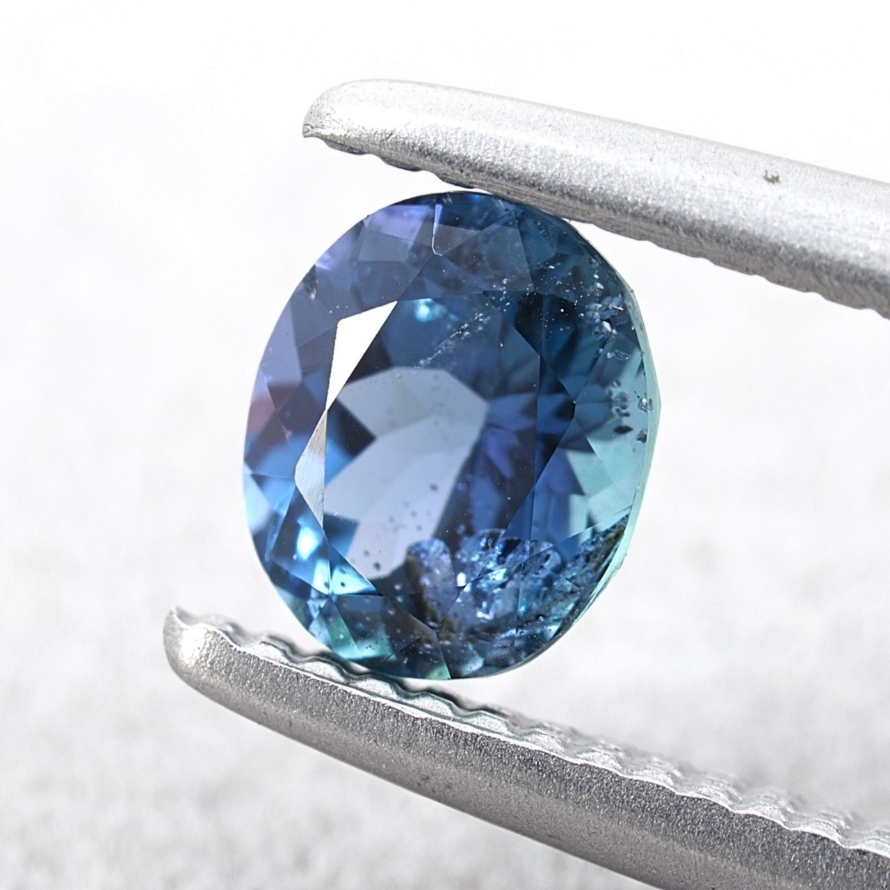 特濃ブルーのコーネルピン。濃さだけで言えばベニトアイトやコーンフラワーブルーのサファイアにも匹敵する色です。けれどそれだけではなくコーネルピンらしい多色性も存分に見られ、ルーペで覗くとインクルージョンと相まってまるで海の中に飛び込んだような感覚になります。
