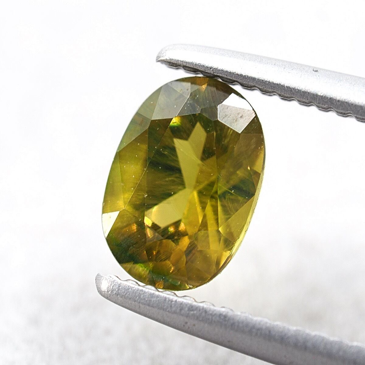 アンドラダイトガーネットの変種とされているガーネットで、これがグリーンカラーになるとデマントイドとなります。そのことから、トパゾライトは通称イエローデマントイドとも言われガーネットの中でも希少と言えますね。しかもこの個体はホーステールインクルージョンを含む品質も優れた子です。