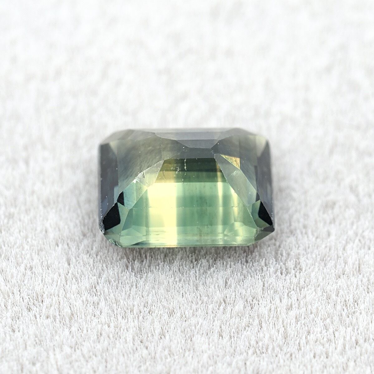 セイロンの名で有名なスリランカ産ですがモンタナサファイアのようなブルーグリーンカラーとイエローのバイカラー、カラーバンドはくっきりしたライン状になっています。