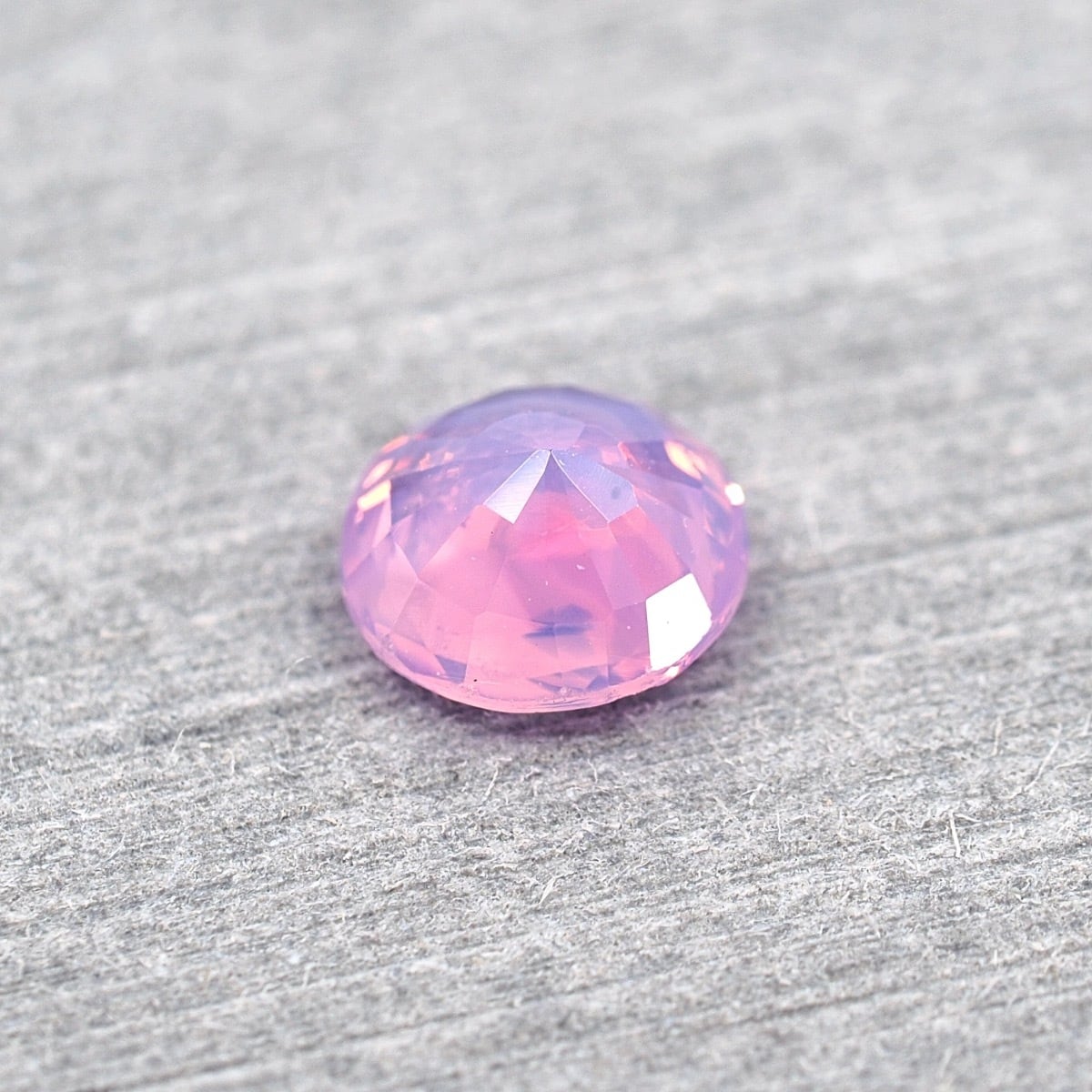 シルキーサファイアとしては割と色濃いピンク色。そこにミルキーホワイトを混ぜたような可愛いイチゴミルクカラーです。1箇所インクルージョンが見られる他、非加熱個体に見られるシルクインクルージョンも確認出来ます。