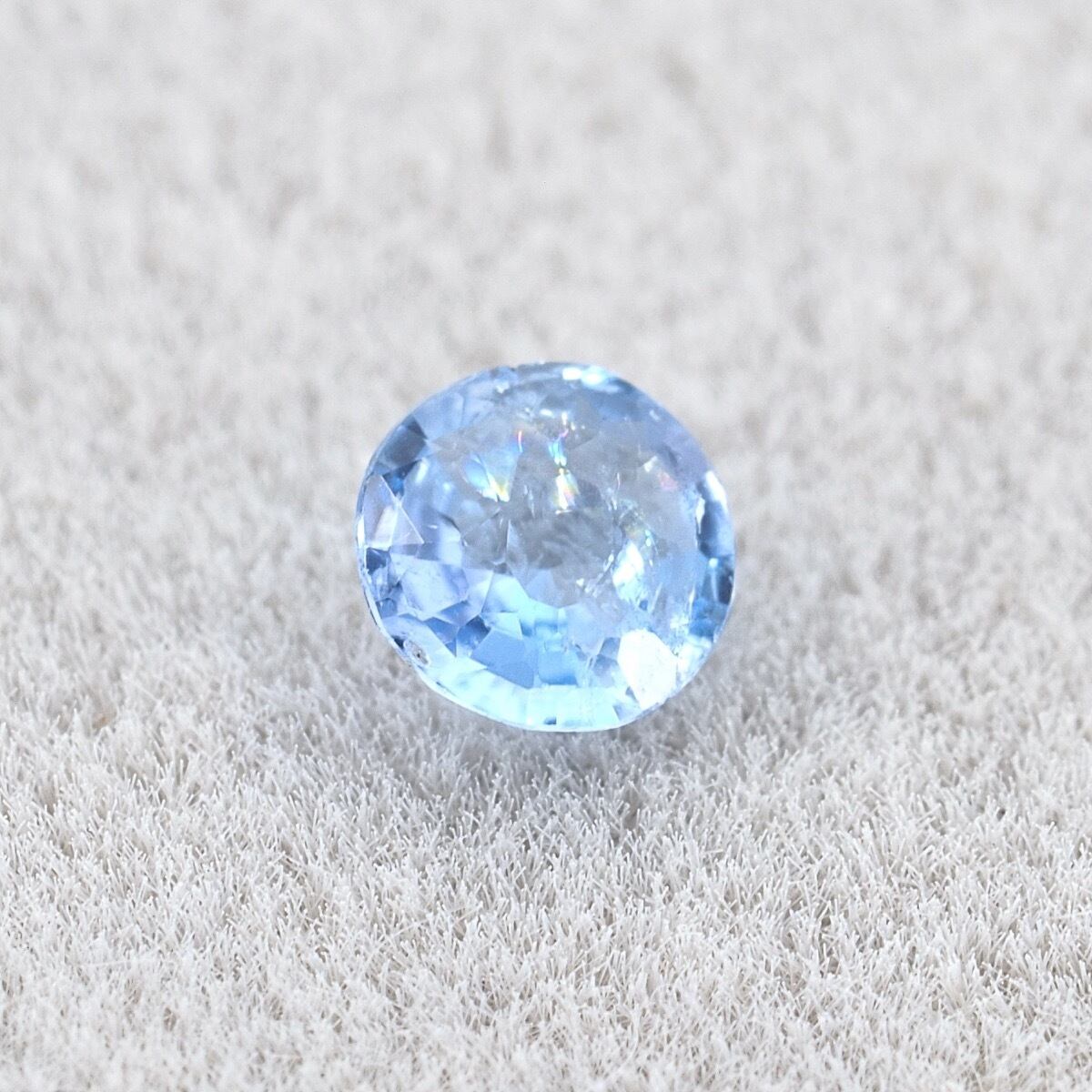 この子の特徴はなんといっても濃いめのブルーカラー。インクルージョンやカケが少しあります。そのぶん、クラックが虹を放つ人気のラウンドシェイプ。