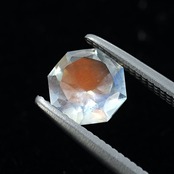 こちらはオレンジのシラーと角度によって色彩鮮やかな色合いを見せる八角形の子です。