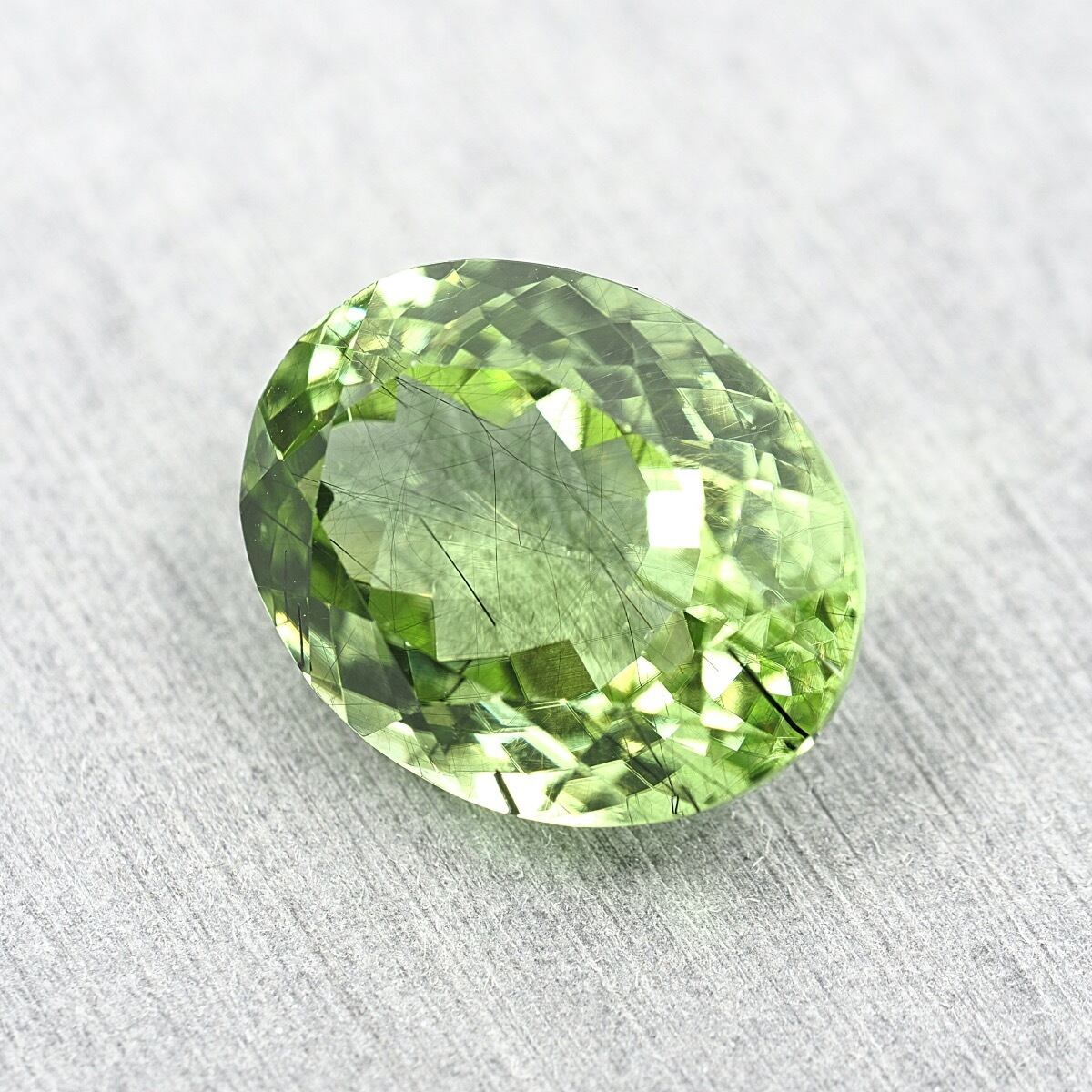 針以外の内包物は全く見受けられないクリーンなピース、色合いはペリドットで最も価値が高いオリーブグリーンのライトカラーです。そして何よりも、希少となる指標である5ctを超えて9ctUPという特選品質個体!(市場相場としては5ct以上になると一気に価値が跳ね上がります)
