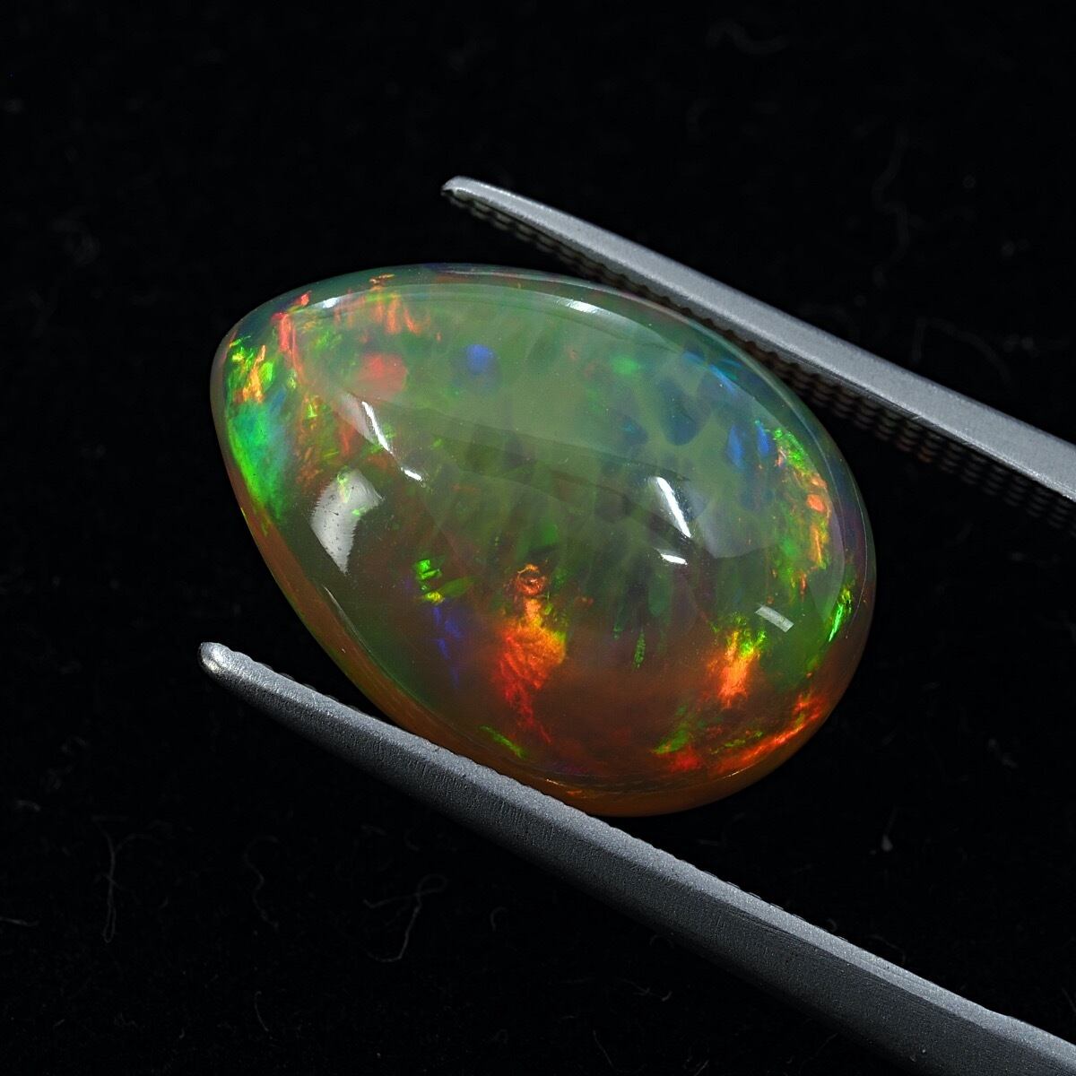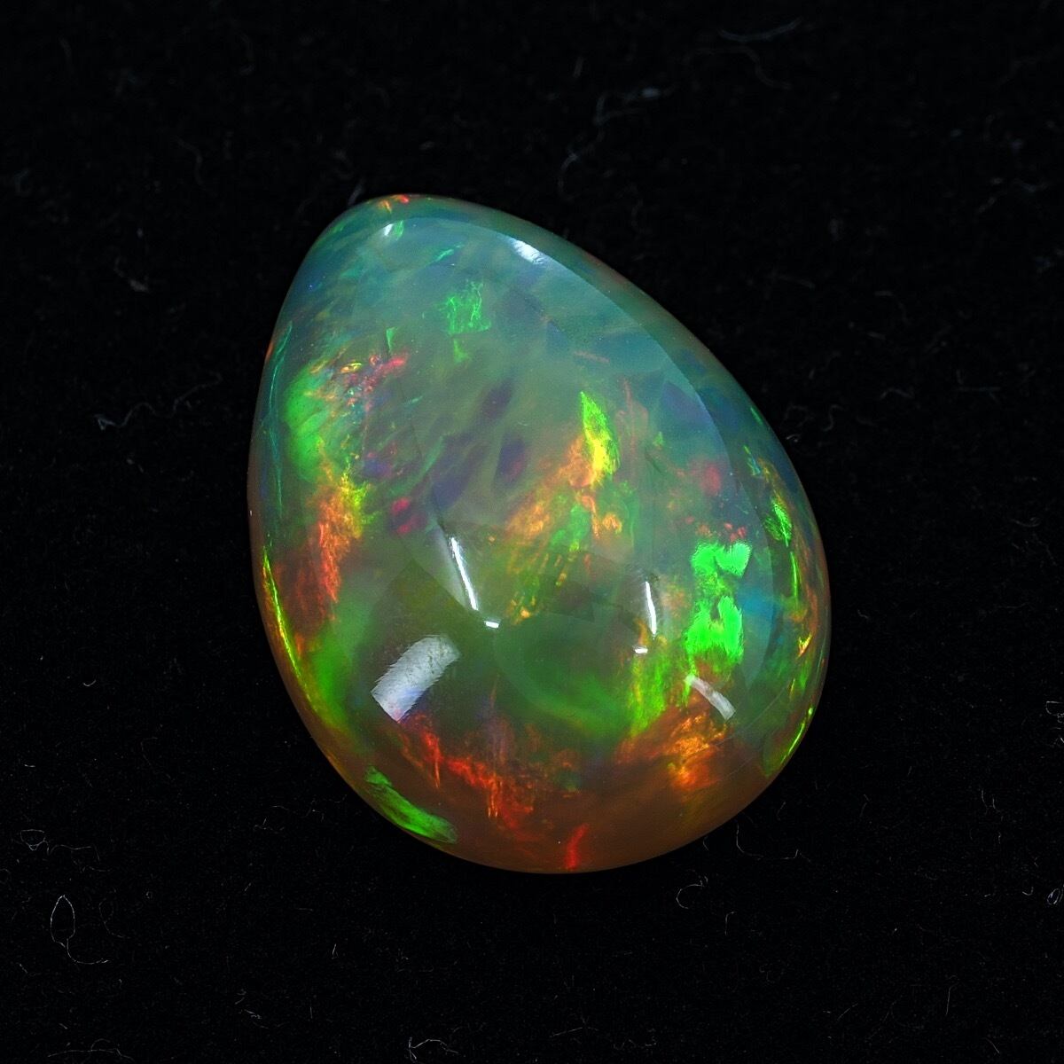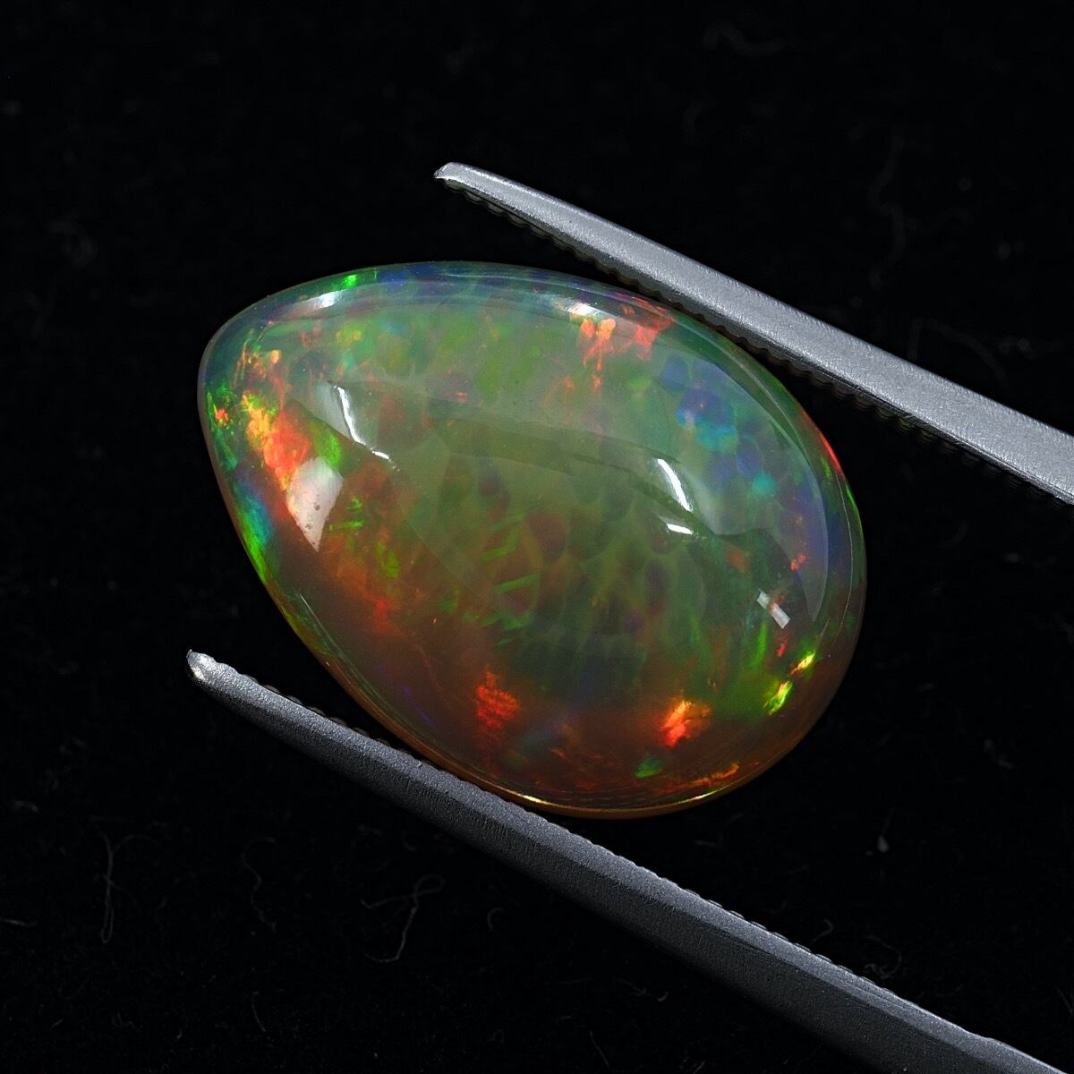 レッド、オレンジの遊色効果が多く、またこの2色が広範囲なので、まるで内部で荒れ狂う炎のようにも見えます。ハニカム模様も肉眼でもハッキリと確認できます。
