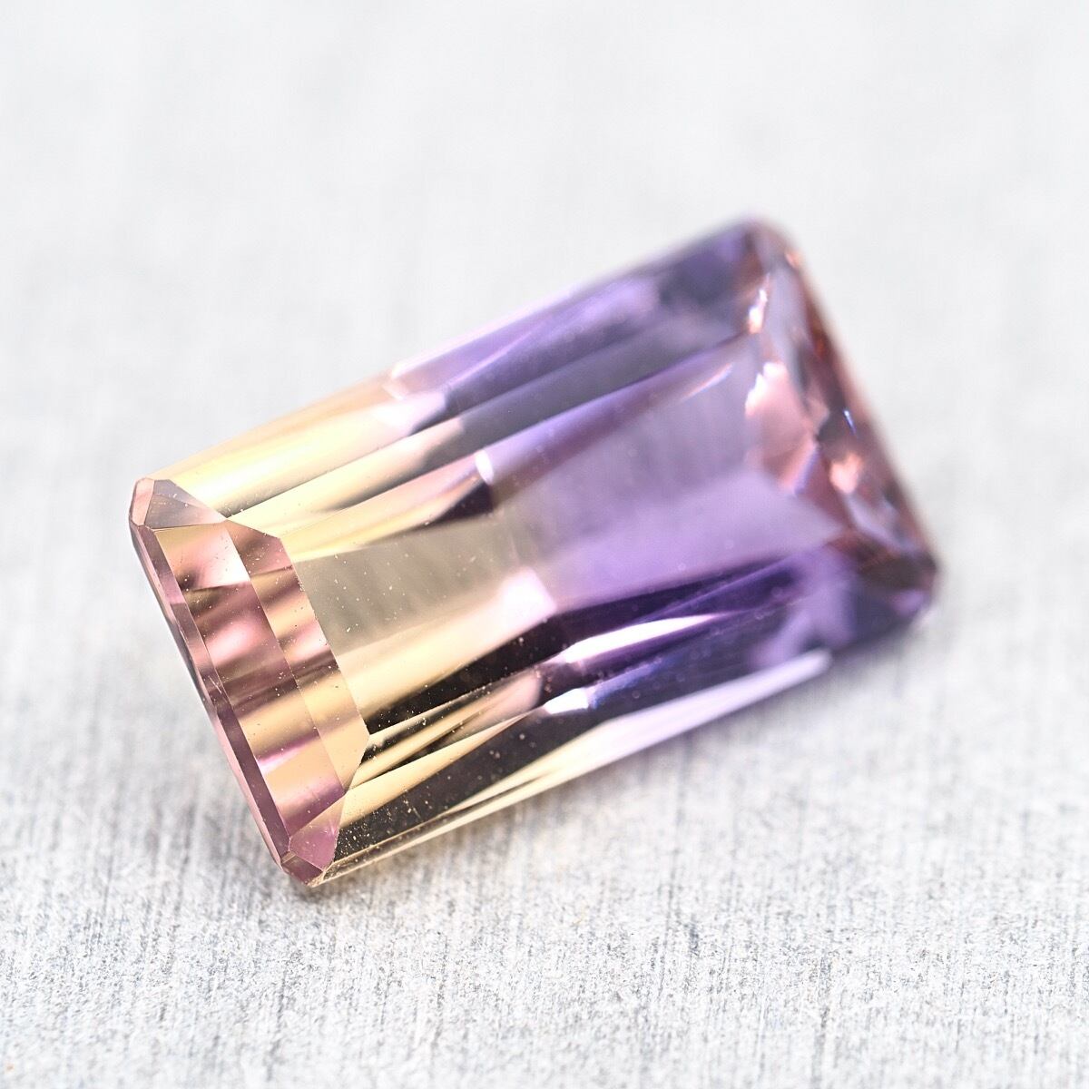 水晶の仲間であり、ひとつの石の中にアメジストの紫色とシトリンの黄色の二色をもっていることで、その名が付けられたのがアメトリン。非常に色の入り方や出方がとても可愛らしいストーンですよね。境目がはっきりとパープルとイエローに分かれており、まるで繋ぎ合わせたかのような見え方が不思議ですね!