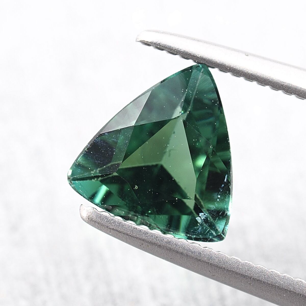 エッジの効いたシェイプと透き通るグリーンが魅力あります、それにインクルージョンも少なめの個体です。