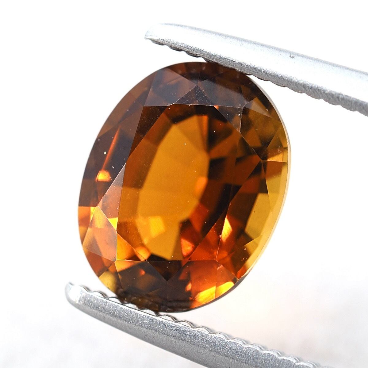 上質な琥珀色に似たオレンジブラウンの美しい色合い。屈折によって見せる濃淡のあるところもとっても良く、また強いテリとルーペクリーン品質なところも流石の一石です。