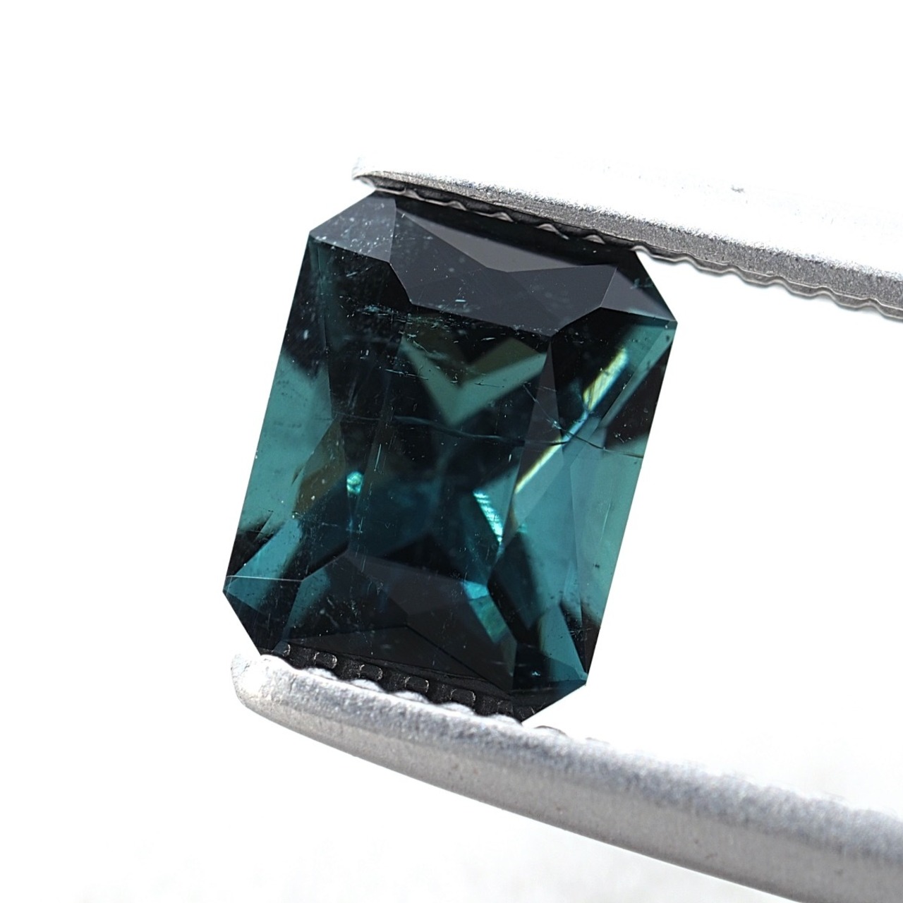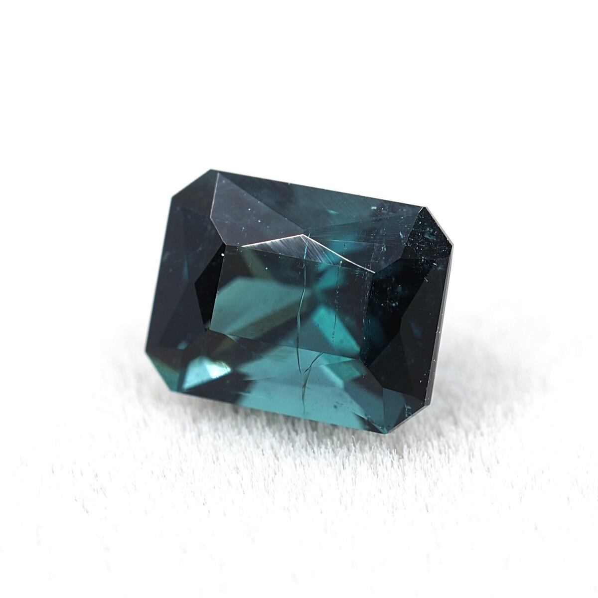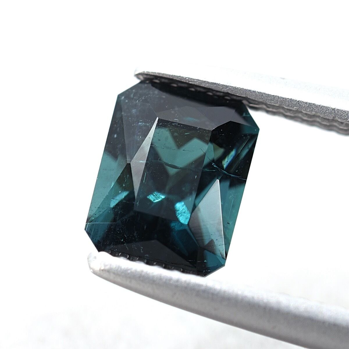 深い青みとグリーンも相まってブルーグリーンの絶妙なカラーを見せるインディゴライトトルマリンです。肉眼ではちょっと青みのがある感じ、屈折光はグリーンが混じってるといったですかね。