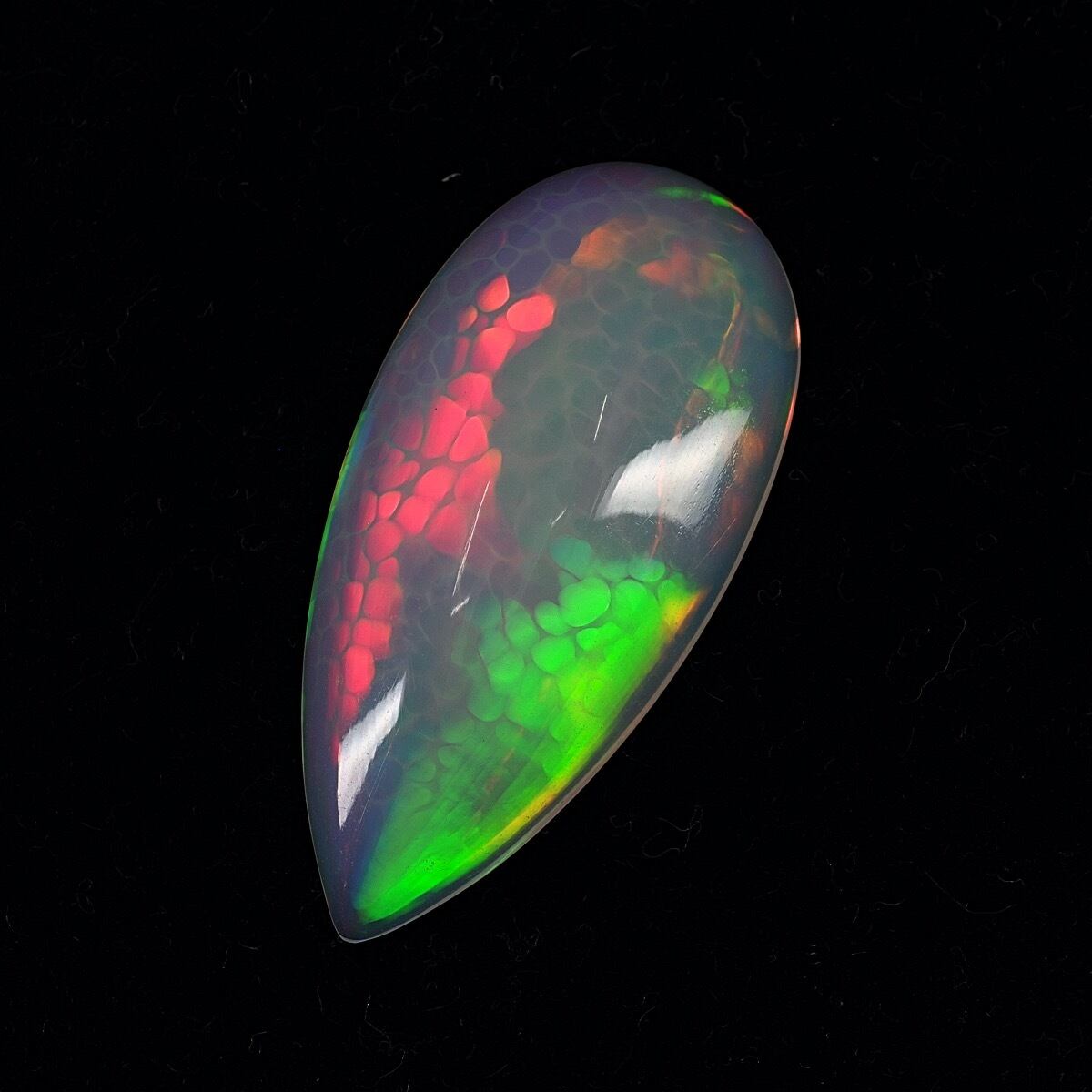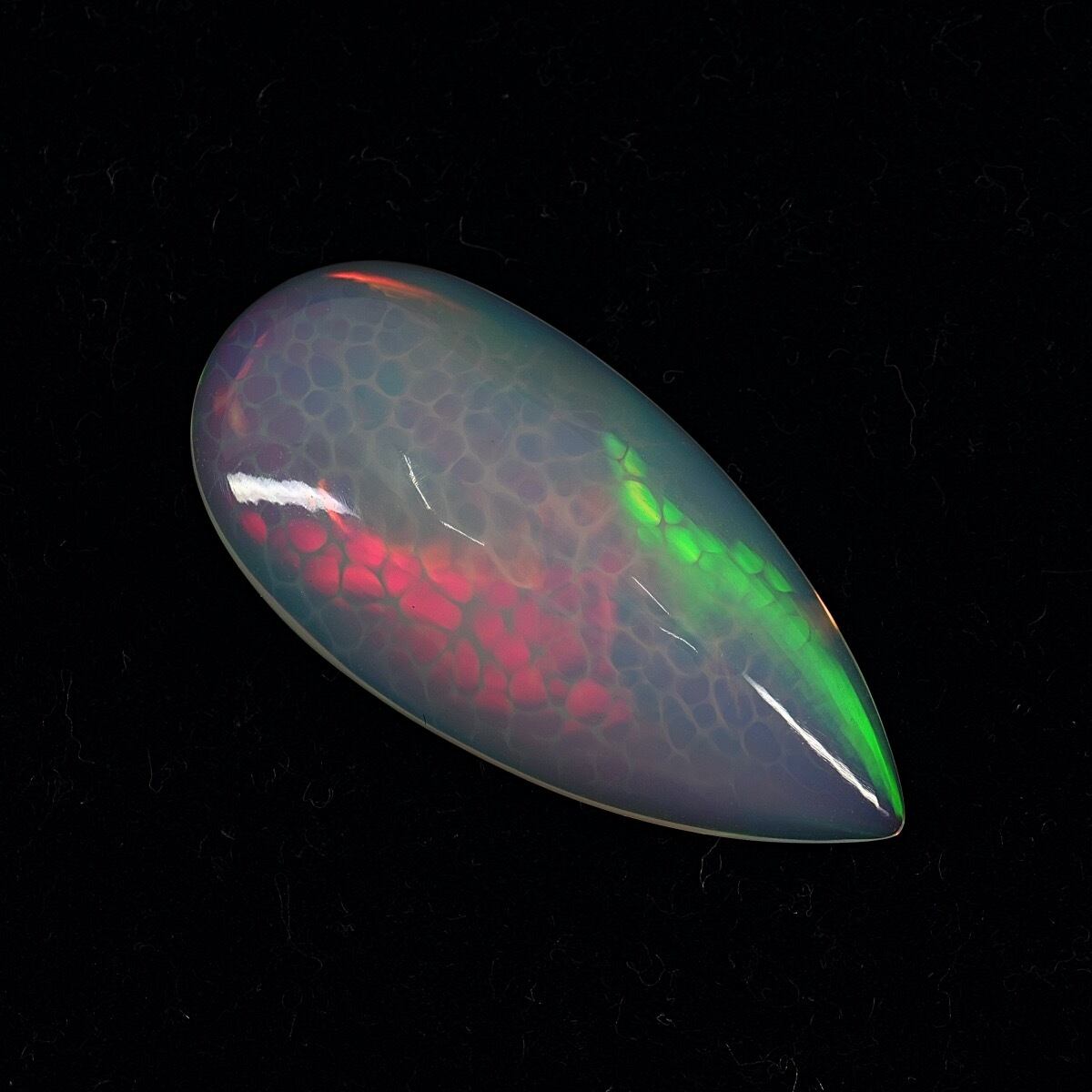 「びっしり」と「細かな」模様がおり、その模様に沿うように虹色のフラッシュ遊色が非常に美しいです。また8ctを超えるサイズで存在感も抜群!
