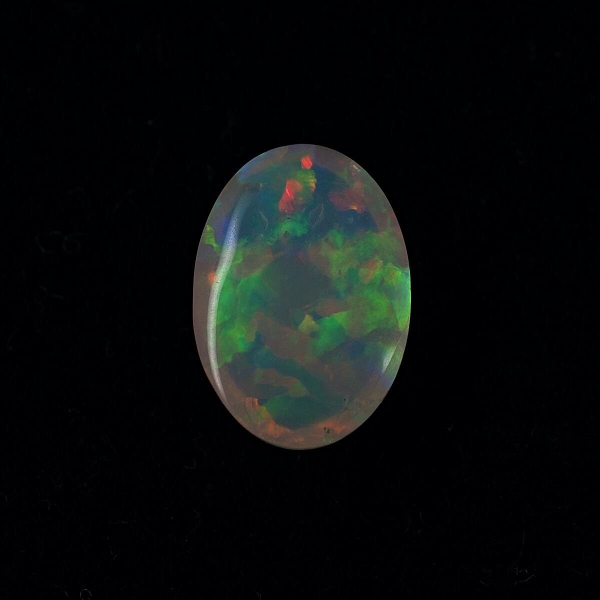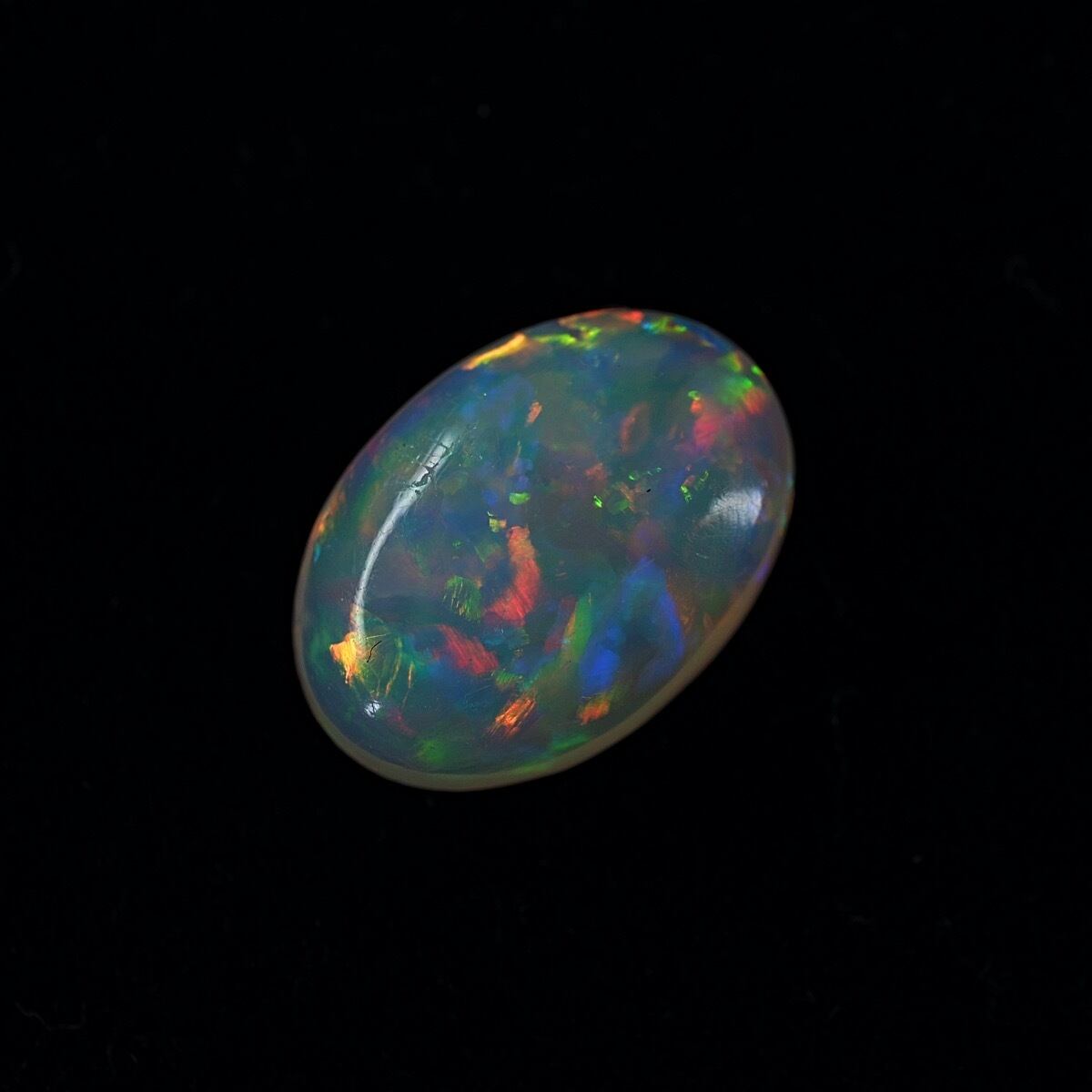 背景が黒なのでわかりにくいかもわかりませんが、気持ち乳白色が混じるオーストラリア産らしい白色の地色。ストローとパレットが融合したような虹色の鮮やかな遊色です。