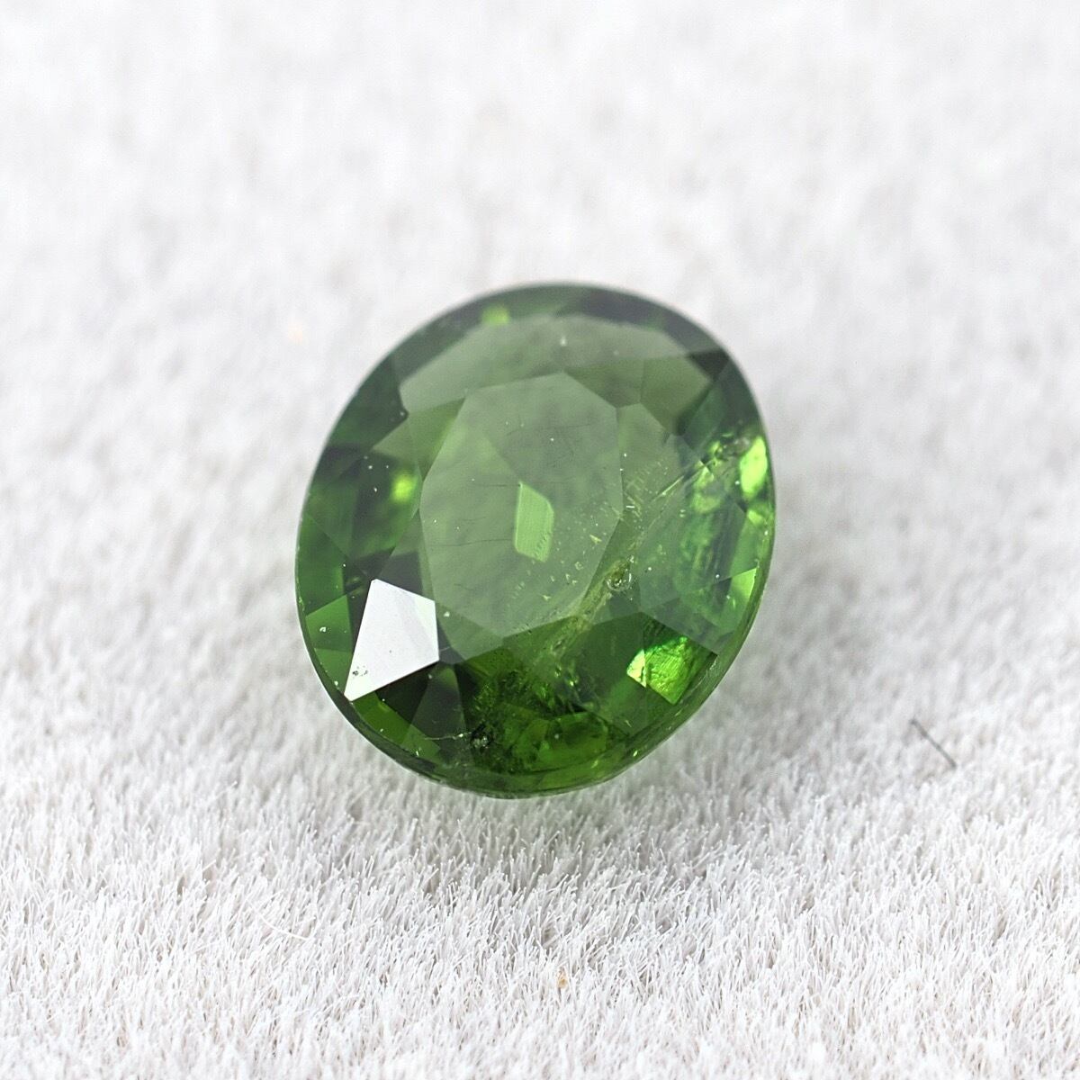 クロムを多く含むアッシュなビリジアングリーン。内包があえてのアクセントに。この個体には微量のバナジウムも含まれていることが分析の結果わかりました。