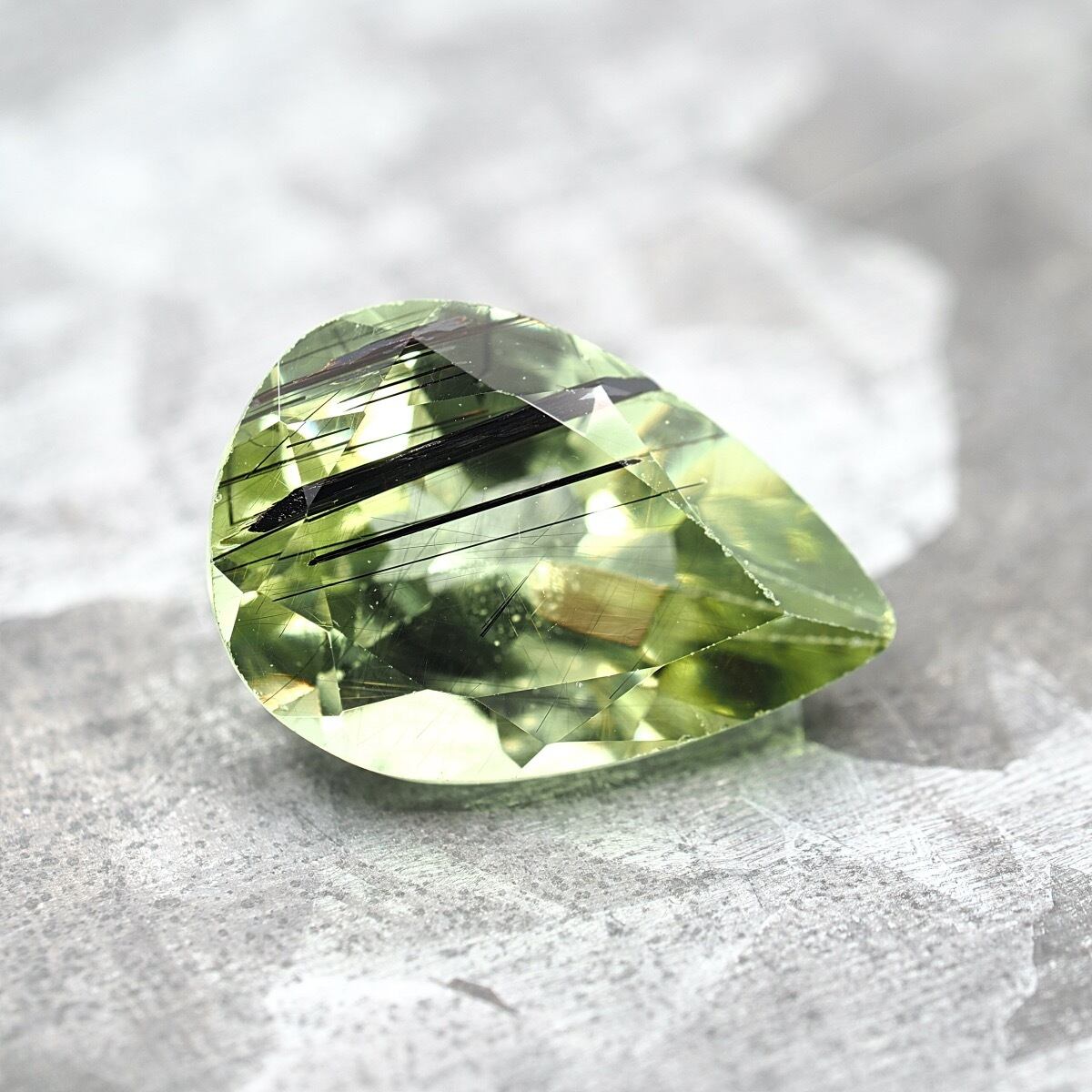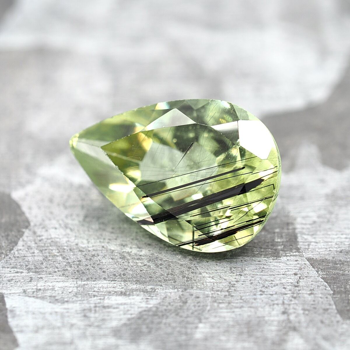 非常にクリアで透明感あり、色合いもペリドットらしいカラー。一部に大小ある針状インクルージョンがおりかっこいいですね!