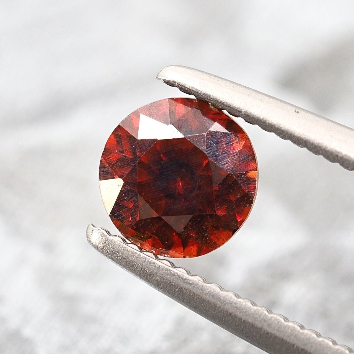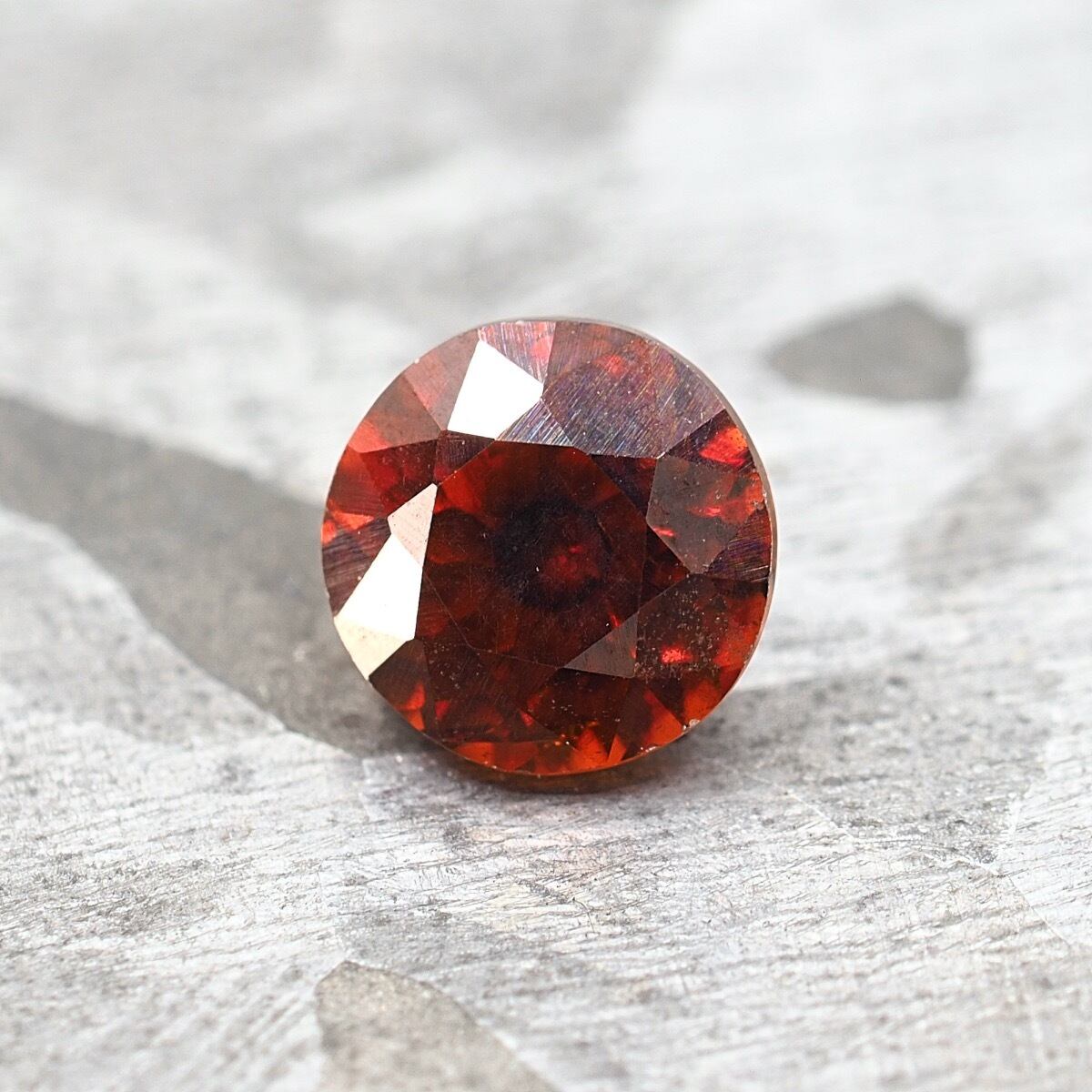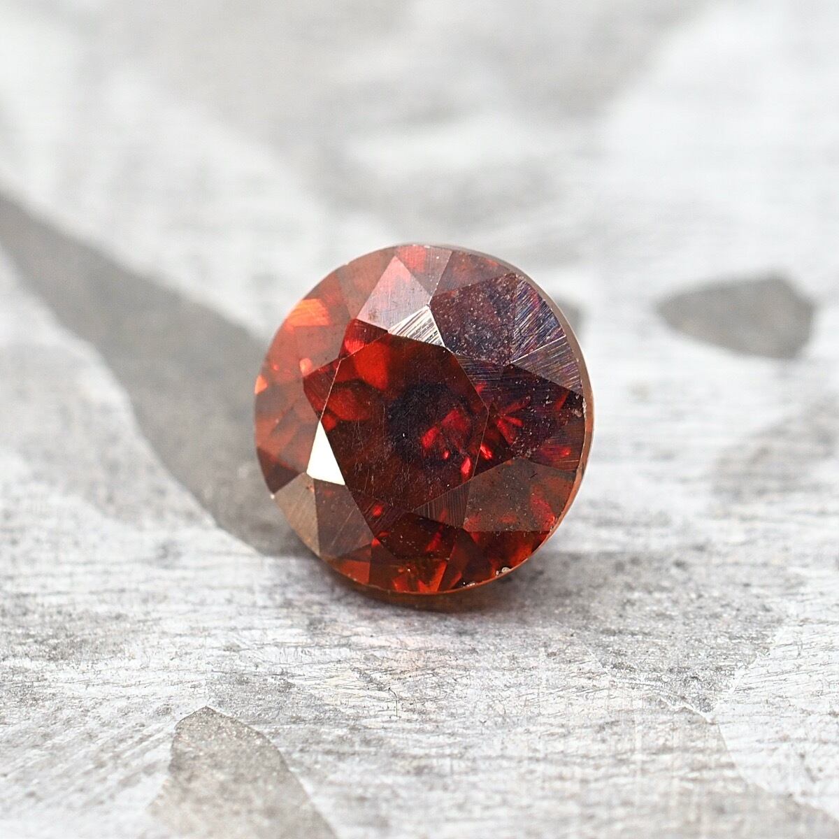 レアで人気な赤みを濃く持つ個体です。キュレット側からはオレンジ強めに見えますが、他の全方向からは深みのあるレッドオレンジが全開です。