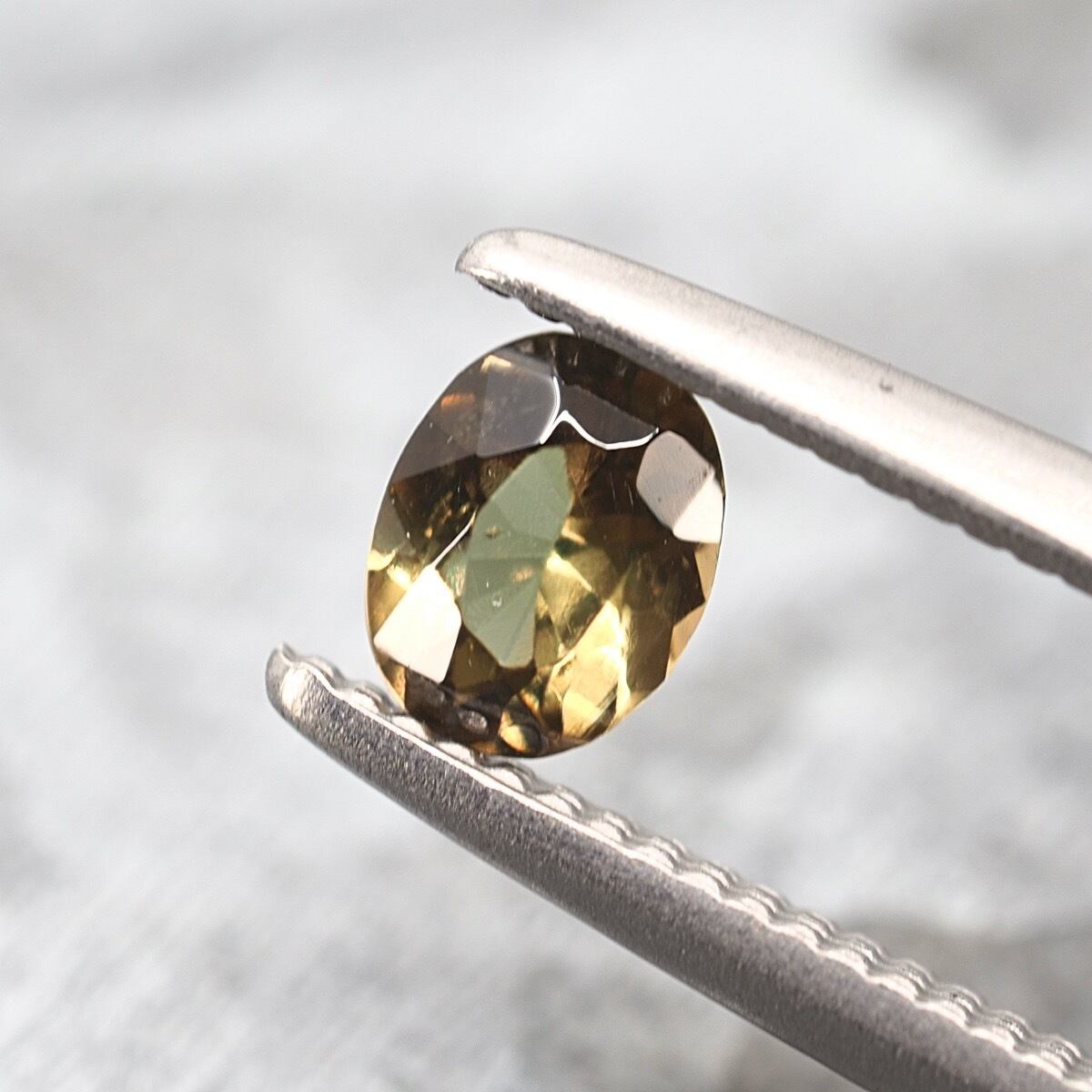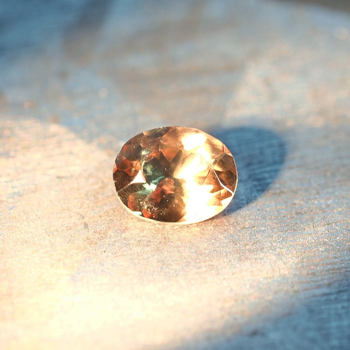 ギリシャ語で3種を意味する“tria”と部族を意味する“phylon”に由来する希少石、こちらはカラーチェンジする個体です。白熱チェンジでライトオレンジブラウンへの変化。