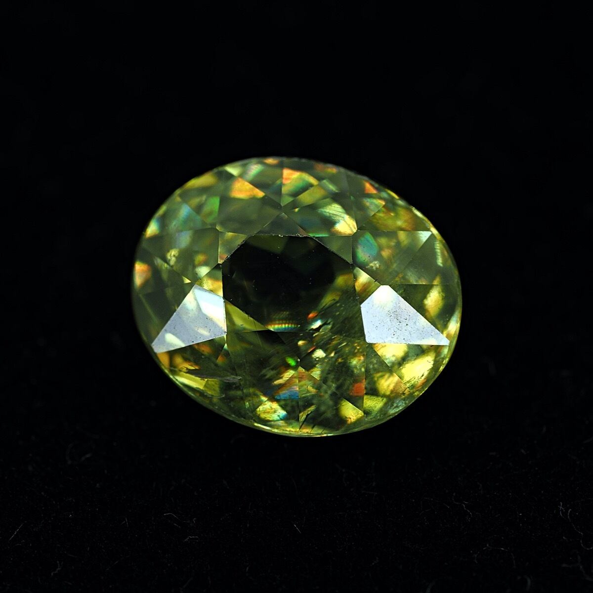 光をスペクトル色にする特徴があり、グリーンの宝石ながら、赤、橙、黄、明るいグリーンと様々な色の輝きを見せます。これはダイヤモンドも持つ「ファイア」という特性なのですが、その屈折率はダイヤモンドをも凌ぎます。