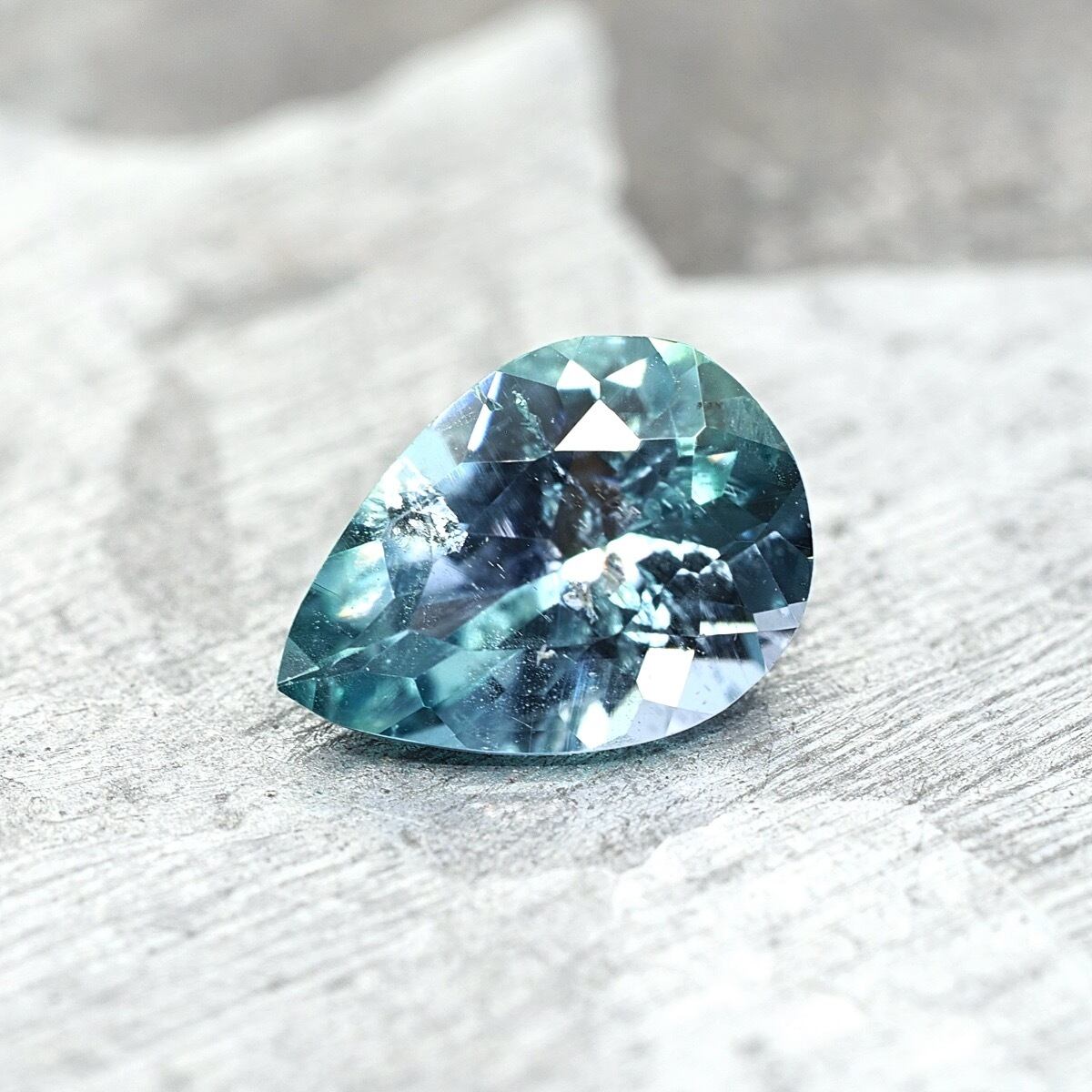 ブルーが多めで色のメインとはなっておりますが、そこにちょうど良い具合にグリーンが入っていて多色性が非常に美しく見えます。この個体の良さは内包物が少ないのはもちろん、どちらの色合いも割と濃いめかなと思います。