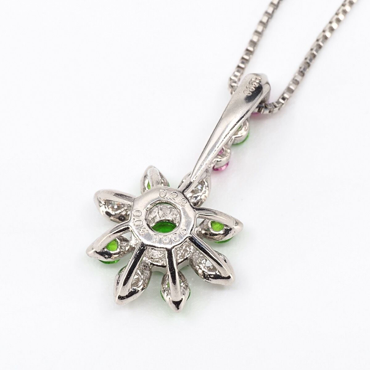 Pt900 Pt850 デマントイドガーネット 0.22ct ダイヤモンド 0.06ct ピンクサファイア 0.03ct ネックレス 2.60g 全長45cm