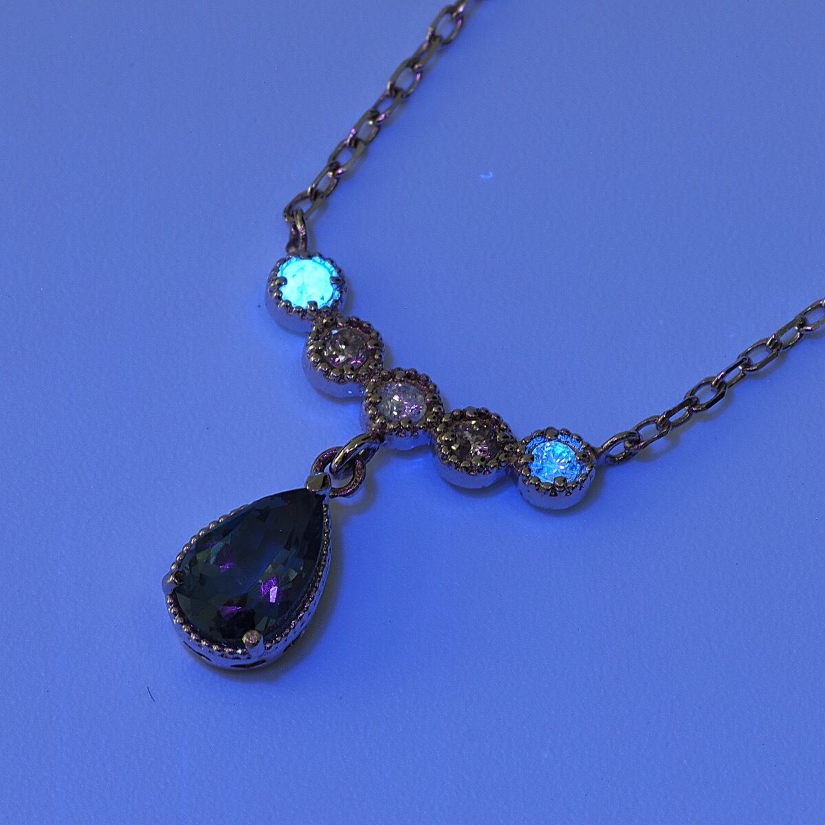 その上部にはダイヤモンドを5石セッティング。写真にも収めておりますが蛍光一部有ります。