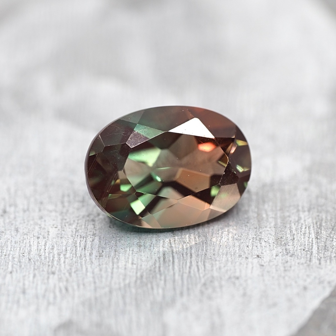 レアなグリーンアンデシンのカラーチェンジ、しかもバイカラーです!2枚目が白熱チェンジの写真で鮮やかなレッドブラウンへと変化します。