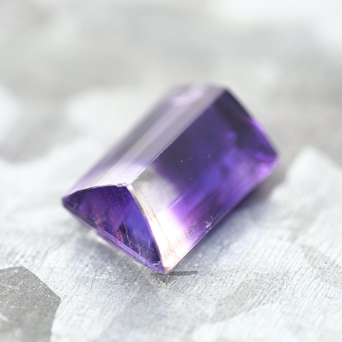 こちらは紫、いわゆるアメシストとクリアなカラーレスのバイカラーですね。