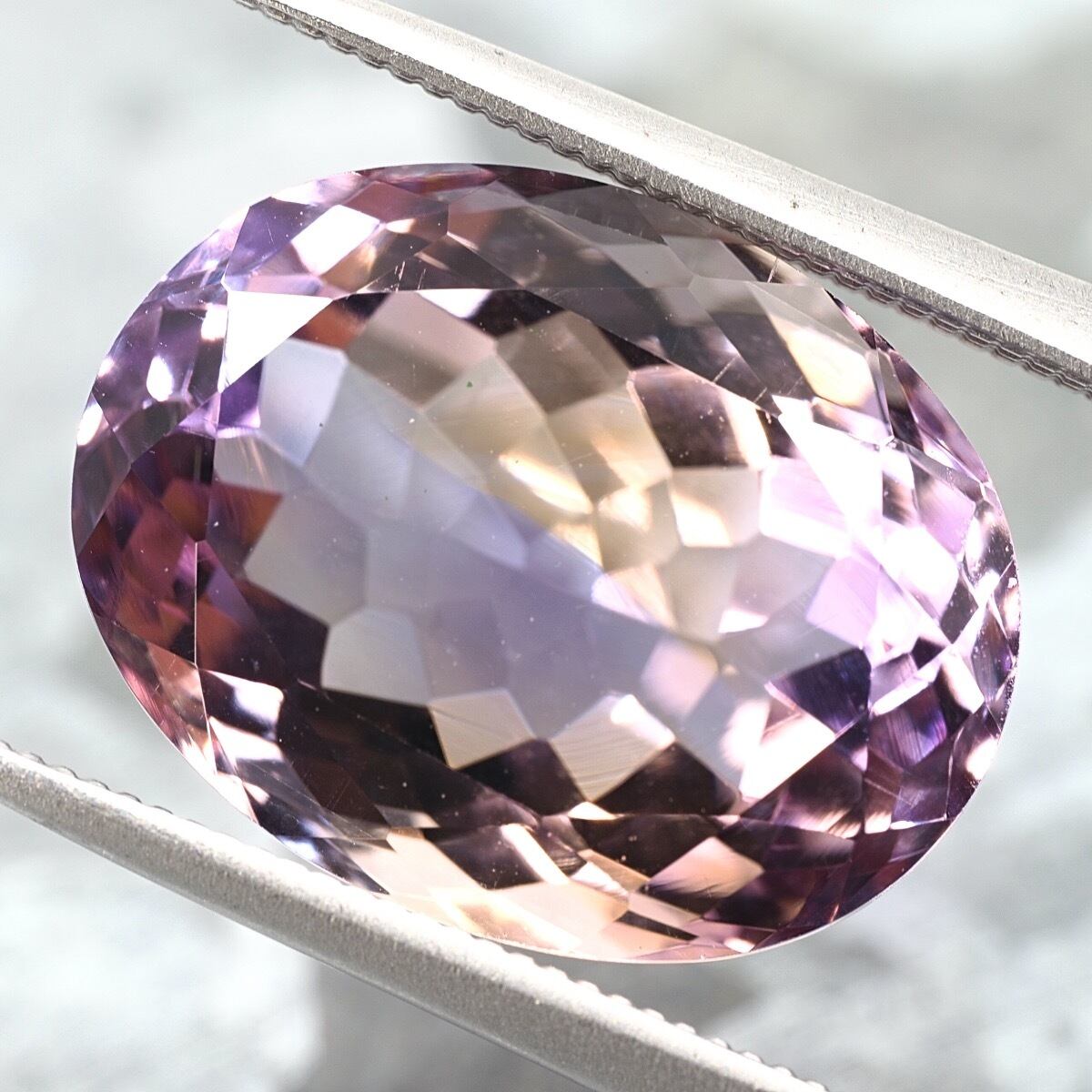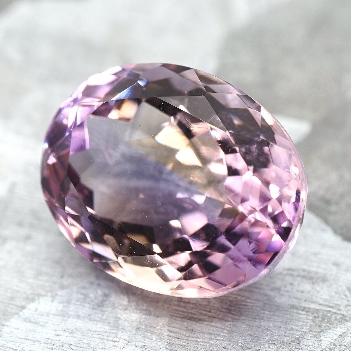 水晶の仲間であり、ひとつの石の中にアメジストの紫色とシトリンの黄色の二色をもっていることで、その名が付けられたのがアメトリン。非常に色の入り方や出方がとても可愛らしいストーンですよね。この個体は細かいファセットが煌めきを放っていて美しいです。