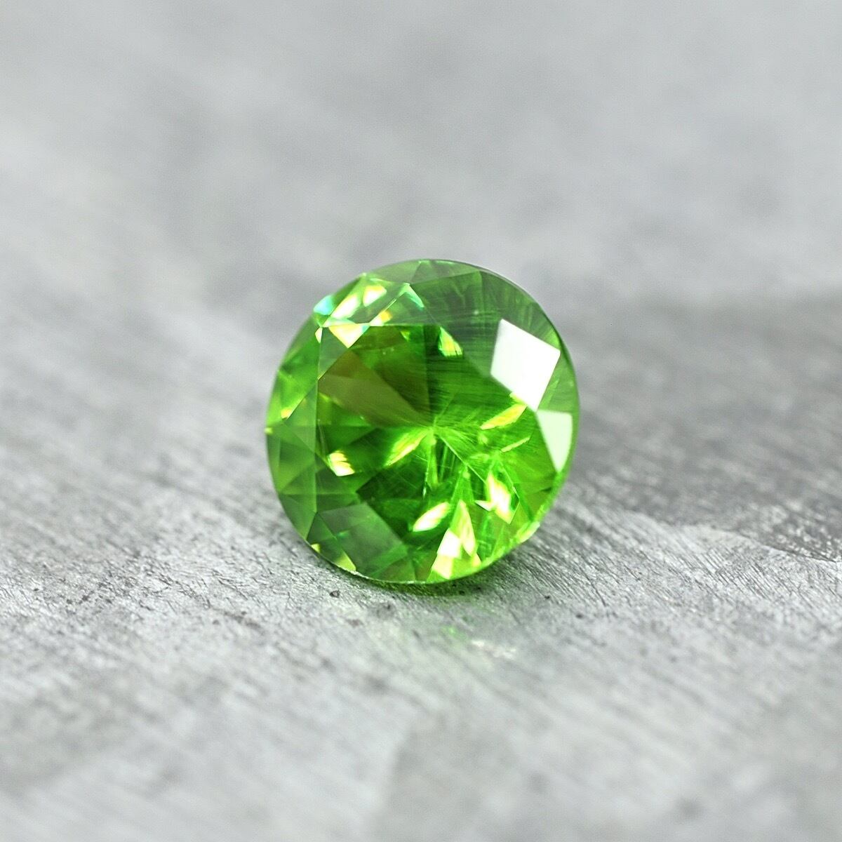 高い屈折率とダイヤモンドよりも高い分散度を持ち、ファセット加工を施すと強いファイアを見せることからオランダ語で「ダイヤモンドのような」を意味する「デマントイド」と名付けられたことが由来です。