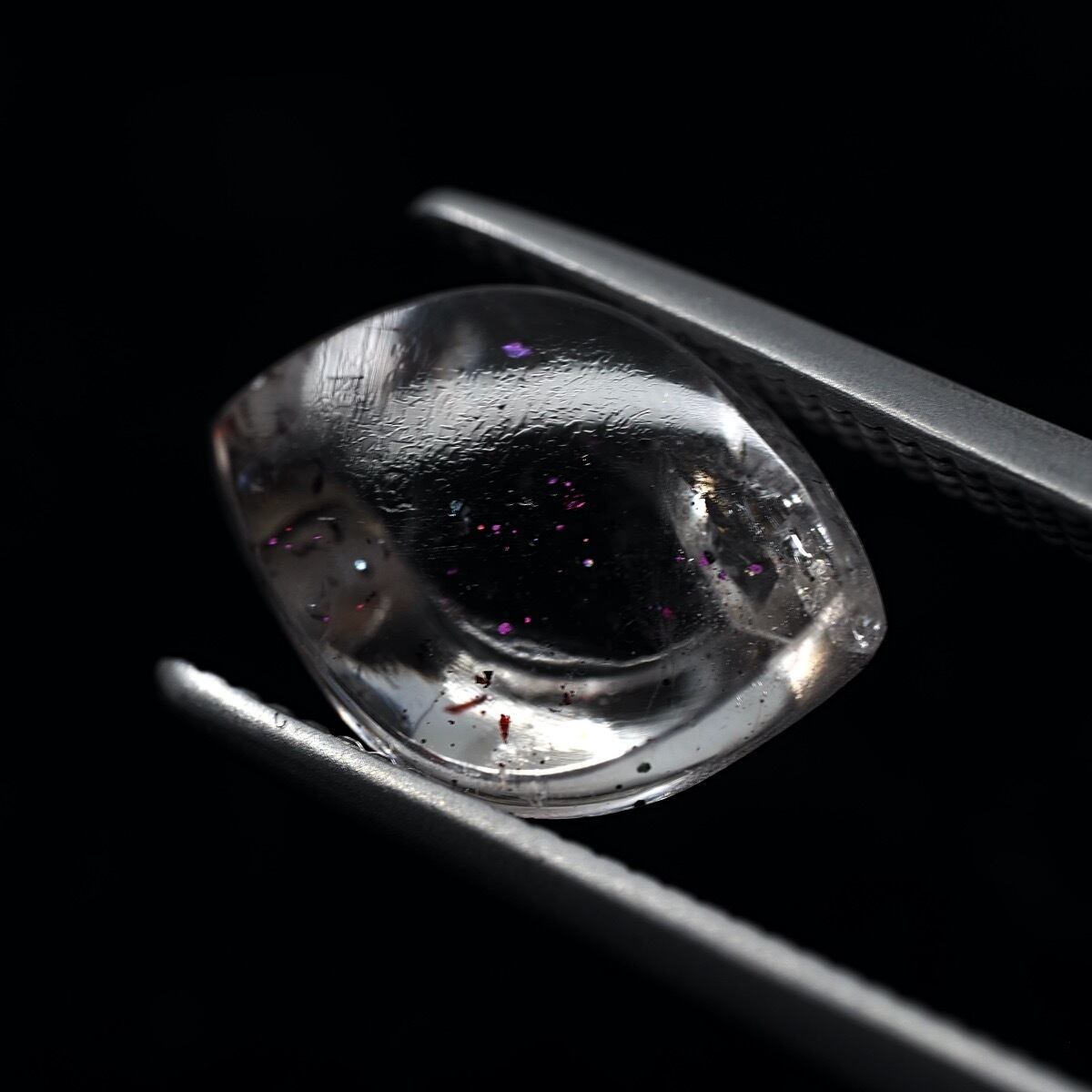結晶の内部で、ラメのようなピンクの煌めきを放つクォーツです。光の輝きが、妖精「ティンカーベル」が撒く粉に似ていることから名付けられたと考えられています。別名はコーベライトインクォーツ。ぷるんとした可愛らしいカットでツヤツヤの潤いがあります。