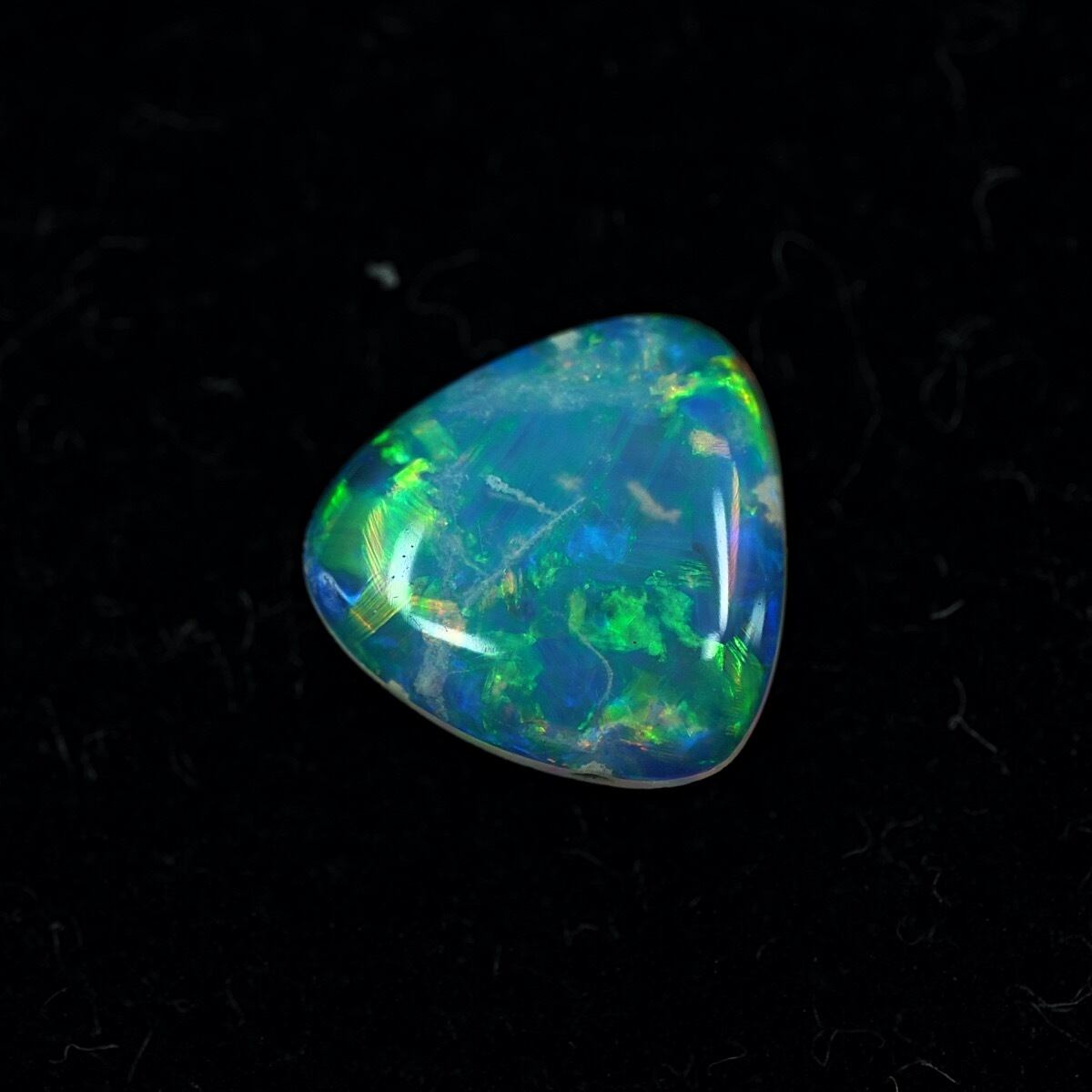 オーストラリア産らしい鮮やかな虹色の遊色、角度で発色がよく変わります。薄めのスライス状のカットです。