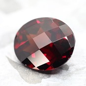 ガーネットといえばコレというほど市場に出回っているガーネットで、この個体は刻まれたチェッカーカットに真紅の赤色が非常に美しいです!