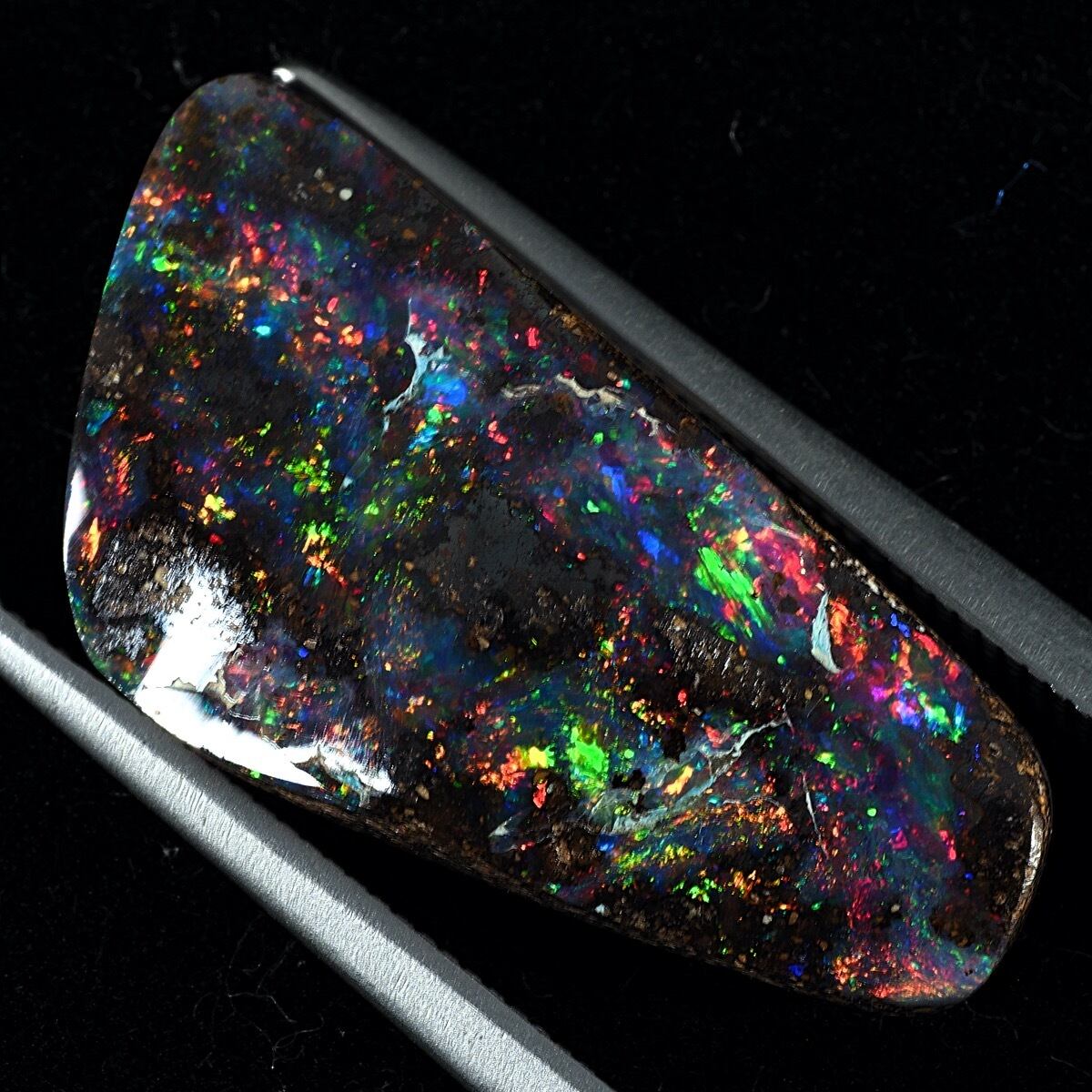 久しぶりに本家本元、クイーンズランドの超絶レインボーの遊色を持つ上質な個体です。これまで扱ってきたボルダーの中でも上位に食い込むこと間違いなしです!バランスの良いカラーの配置も自然に出来たとは思えない美しさです。