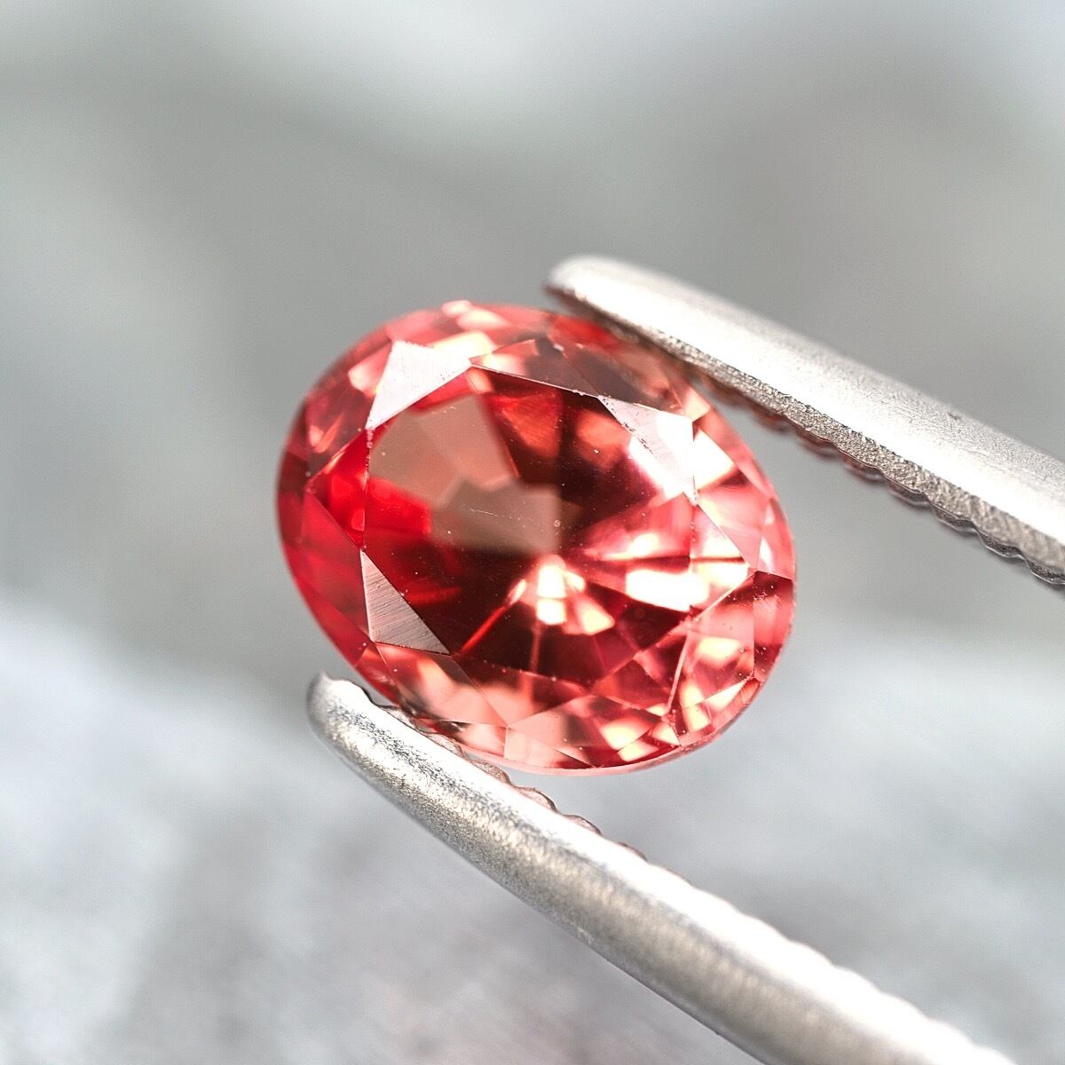 とにかく煌めきが強くギラギラです、かつオレンジが混じるピンクでまるでパパラチァサファイアのような可憐な色合いに。
