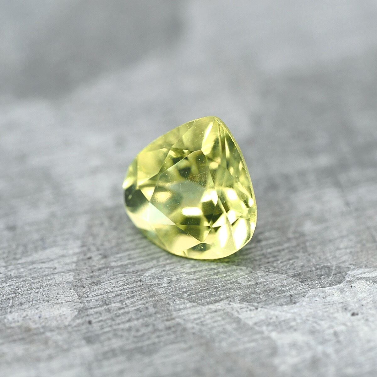 こちらは幻のベリルといわれるパロットクリソベリル、写真や動画で見るより印象としては写るより色濃く少しネオン感が強い感じがあります。加えてこの石では珍しいマロンカットですね。