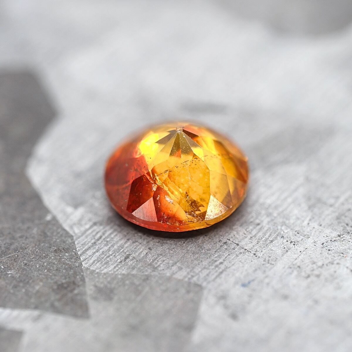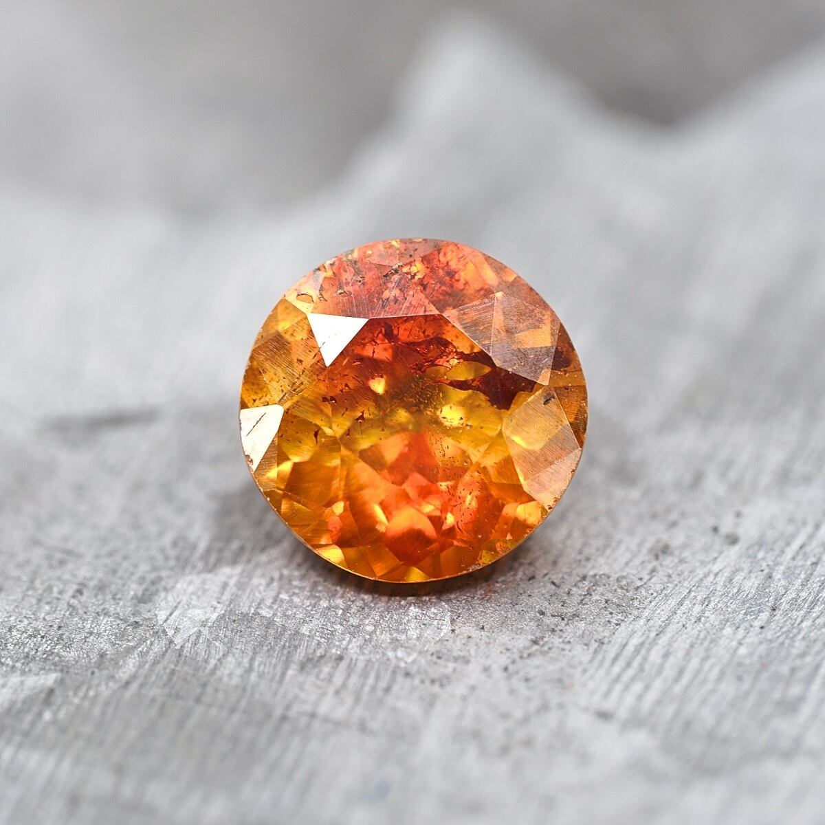 カラーはオレンジとイエローが程よく混じり合っている個体です。このスファレライトは内包物の特徴でセレクトしました、紅葉の風景のような印象を受けます。