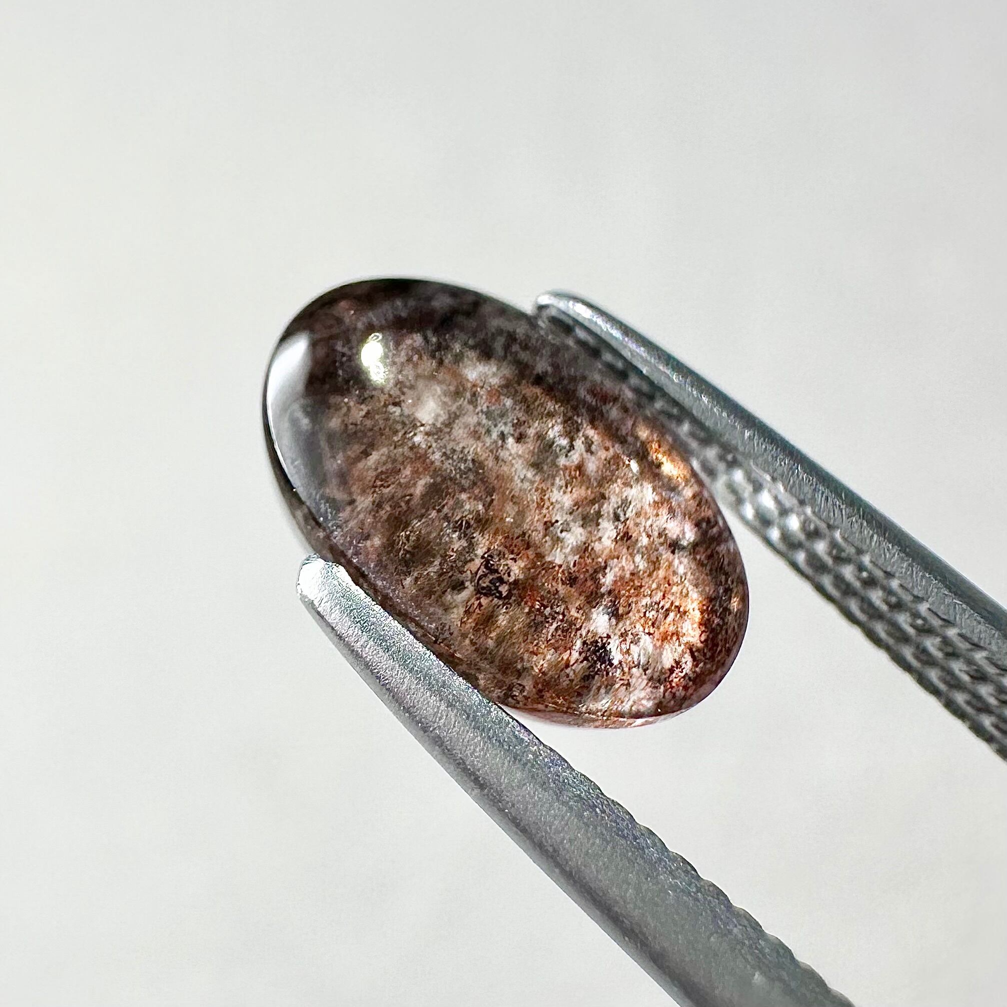 2019年のツーソンミネラルショーでお披露目された一定の方向から光を受けるとシャンパンゴールドに煌くアクアマリンサンストーン。アクアマリンの中にイルメナイト(チタン鉄鉱)という液膜状のインクルージョンが煌めきの正体です。