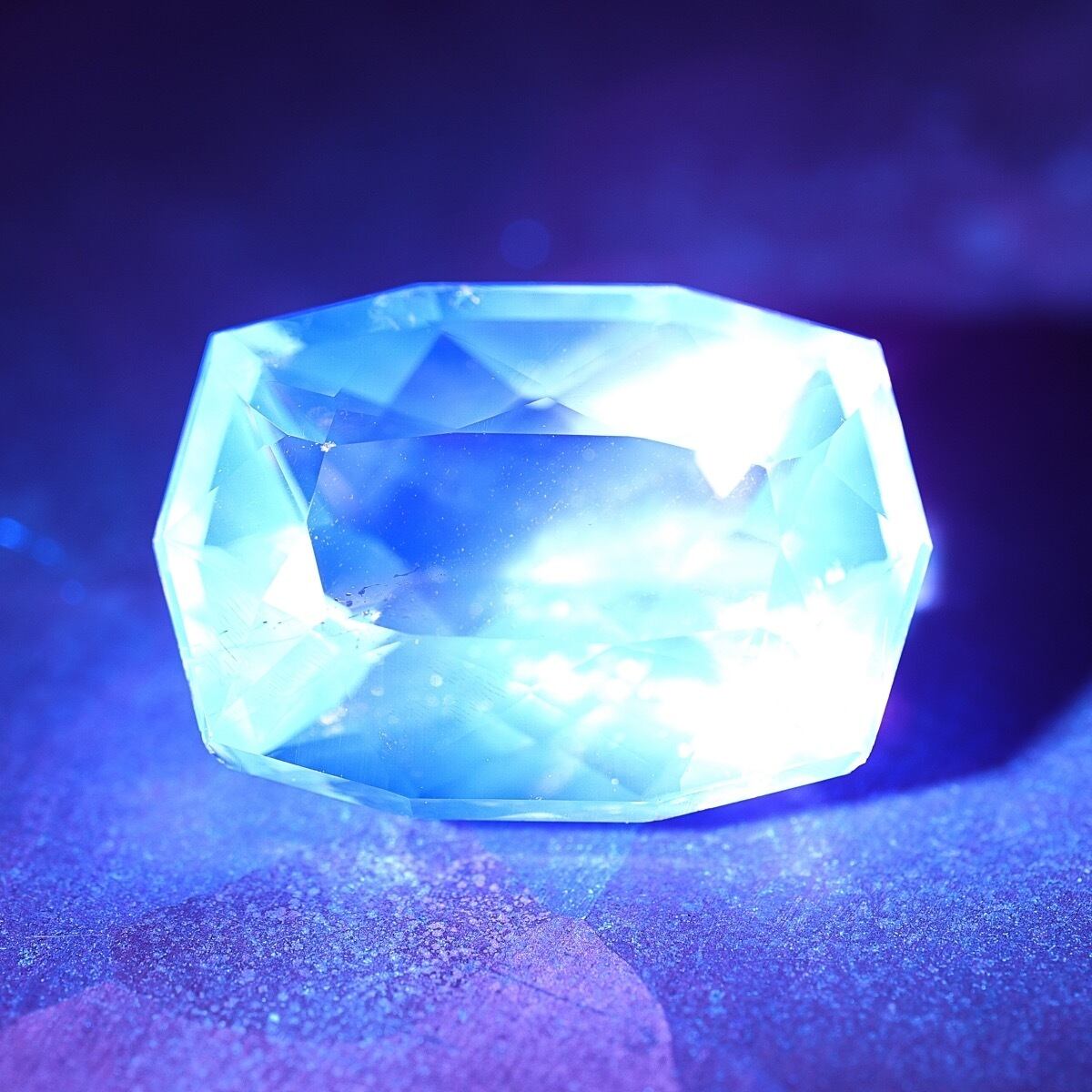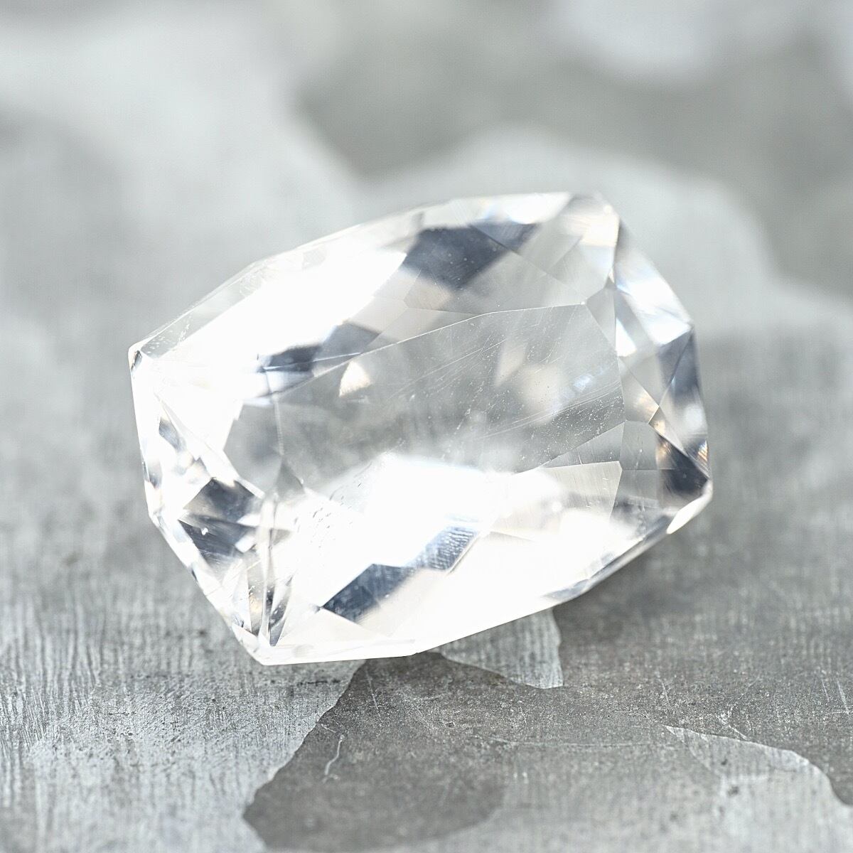 ちょっと珍しいカラーレスの蛍光個体、多角シェイプのカットも非常にかっこいいです!