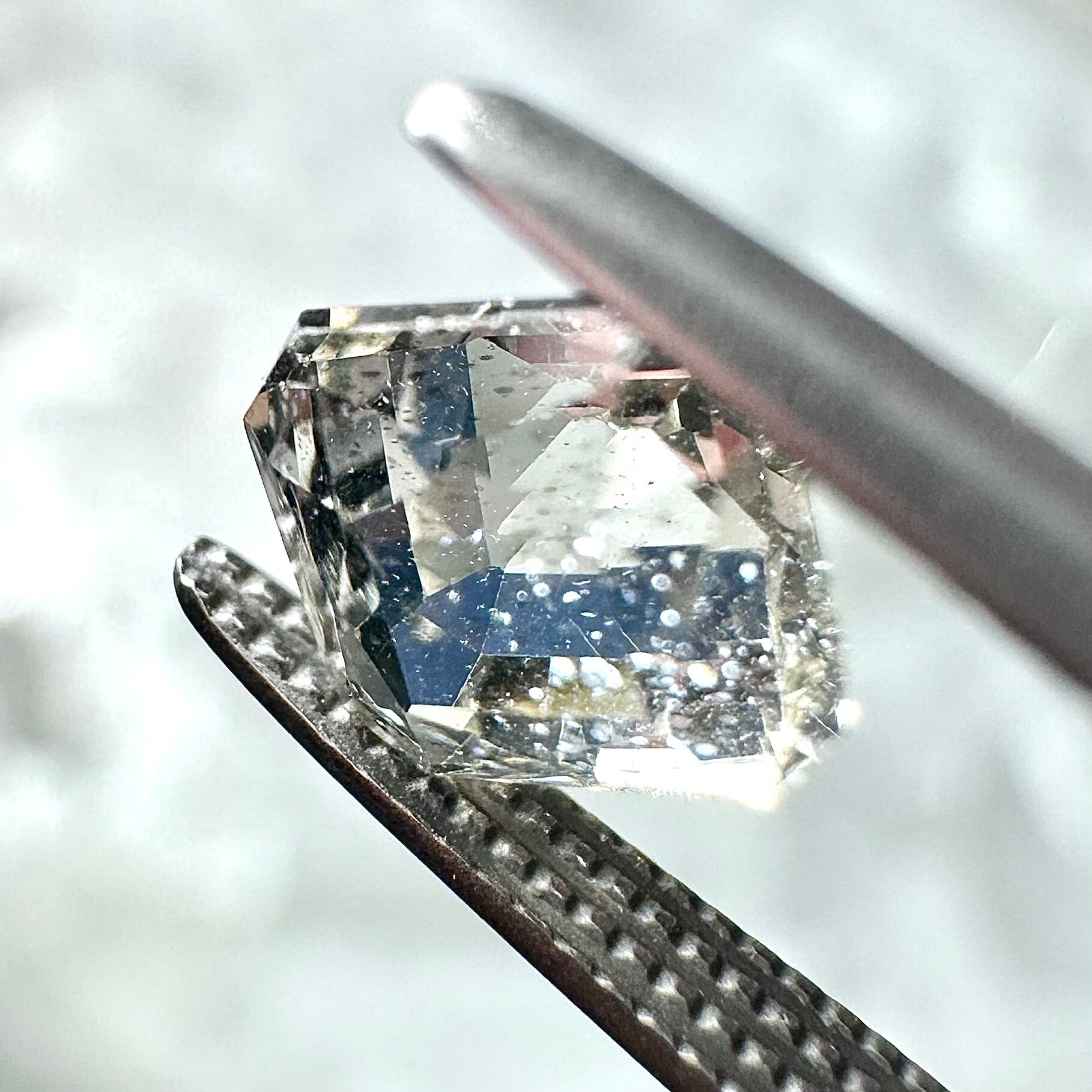 仄かにグレイッシュでカラーレスに近く、インクルージョンがキラキラ煌めく個体です。蛍光も可愛らしいピンクへ。